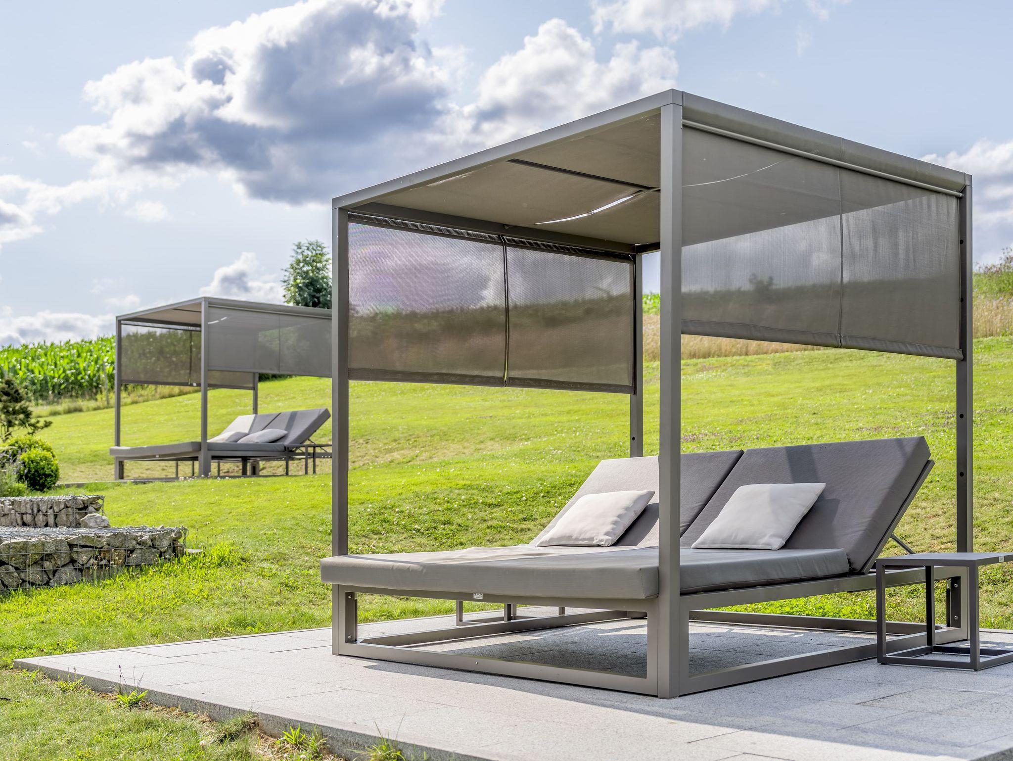 Eine Filztasche mit flauschigen Bademänteln und Liegenauflagen ist für Ihr Wellnessvergnügen bereits gepackt.