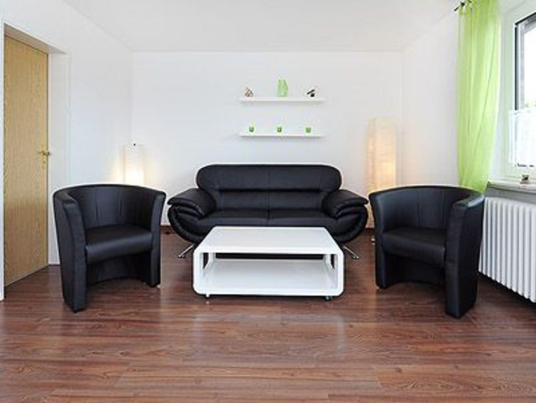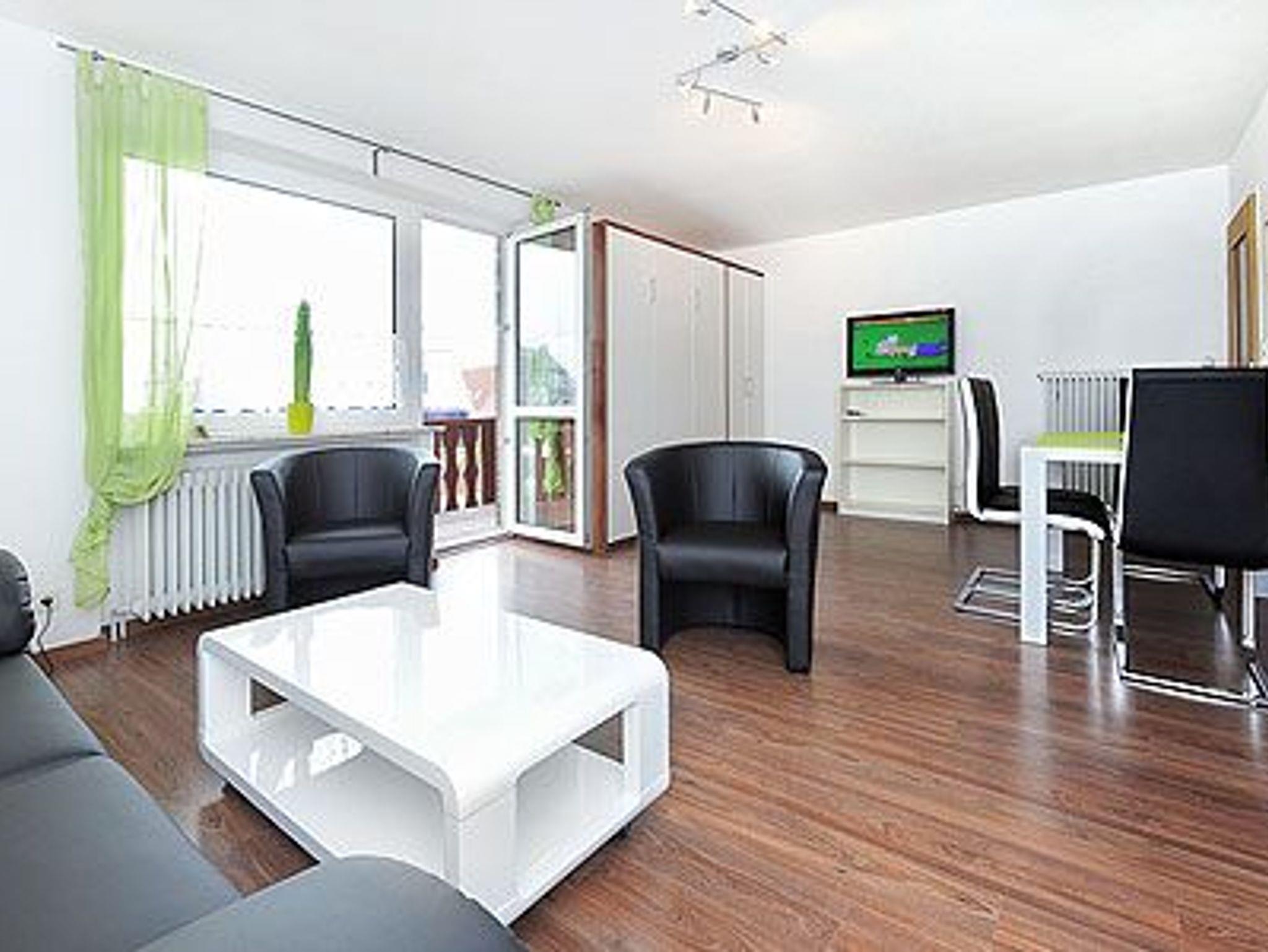 Größe ca. 42 Quadratmeter, Wohn- und Schlafraum, Küche, zweites separates Schlafzimmer/Kinderzimmer, Badezimmer mit Dusche, Waschtisch und WC, Obergeschoss, Balkon, Internetzugang über WLAN möglich, optimal für 2 bis 4 Personen.