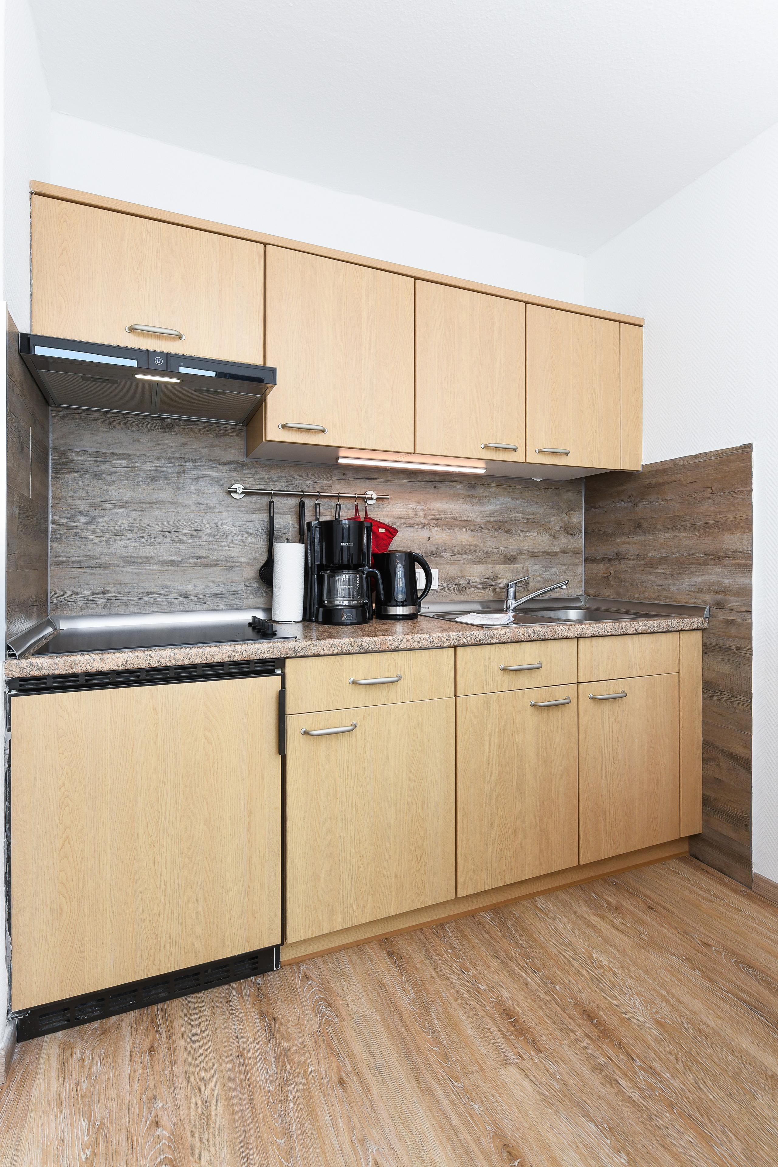 Die Wohnung ist wie folgt aufgeteilt. Im Wohnraum befindet sich eine Küchenzeile (Filter Kaffeemaschine, Toaster, Wasserkocher, Kühlschrank mit Eisfach, Sitzgelegenheiten sowie ein Sofa mit Schlaffunktion. Das Badezimmer mit Tageslicht ist mit einer Dusche und WC ausgestattet. Ein Schlafraum mit einem 180*200 Boxspringbett und ein zusätzlichen Schlafraum mit einem 140*200 Boxspringbett gehören noch mit zur Wohnung. Der kleine Flur rundet die Wohnung ab.