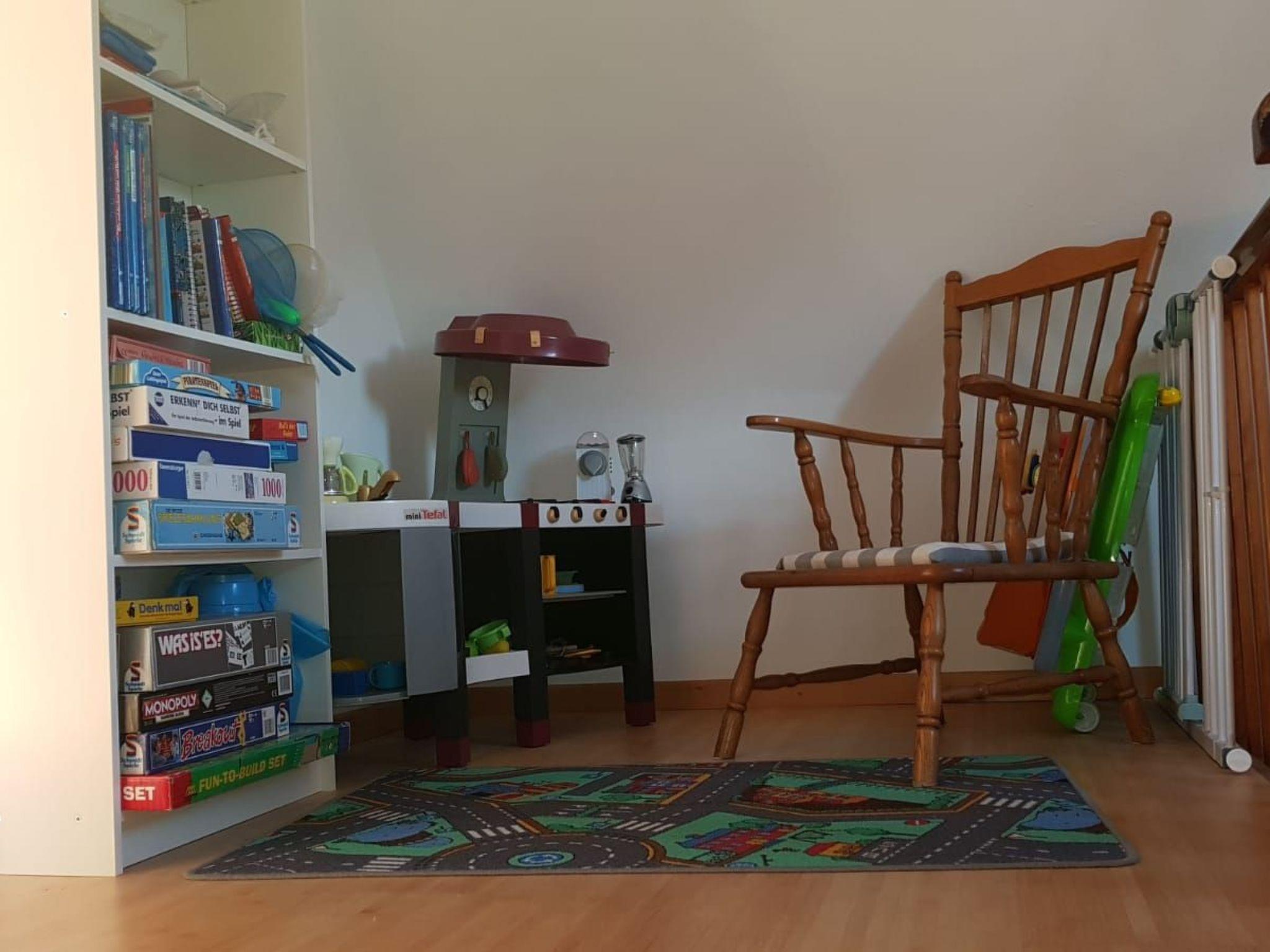 With a living space of approx. 90 m², this accommodation offers enough space for a maximum of six people and has been furnished with great attention to detail. The cosy living room has a leather suite, a rocking chair, a flat screen TV with Neflix access, a Playstation 3 with various games and a landline telephone. In the separable dining room there is a large dining table with six chairs and a stereo system. The large kitchen is equipped with a cooker/oven, a fridge with freezer compartment, a dishwasher, a microwave, two coffee machines (pad/filter), a toaster and a kettle. A shower room with hairdryer completes the offer. The three bedrooms are located on the upper floor. The master bedroom has a double bed (1.80 metres wide) and a large wardrobe, the second bedroom also has a double bed (1.80 metres wide) and a chest of drawers and the children's room is furnished with two single beds (each 0.90 metres wide) and a chest of drawers. On this floor you will also find a small WC and a play corner, which can also be fitted with a stair guard for the little ones if required. In addition, a washing machine, heating in all rooms, board games for young and old and 50 Mbit/s WLAN internet access are available free of charge. Underfloor heating is partially available.