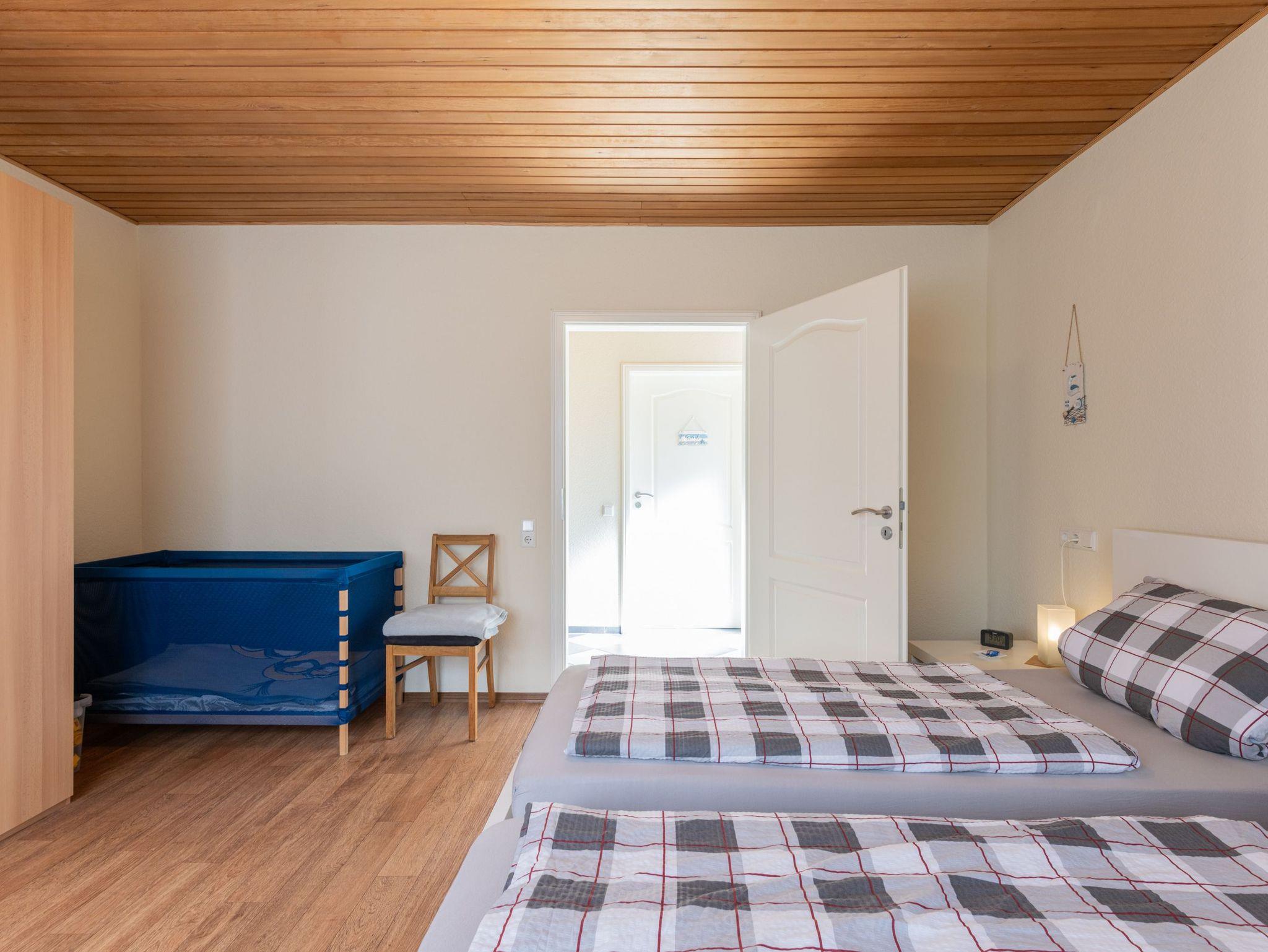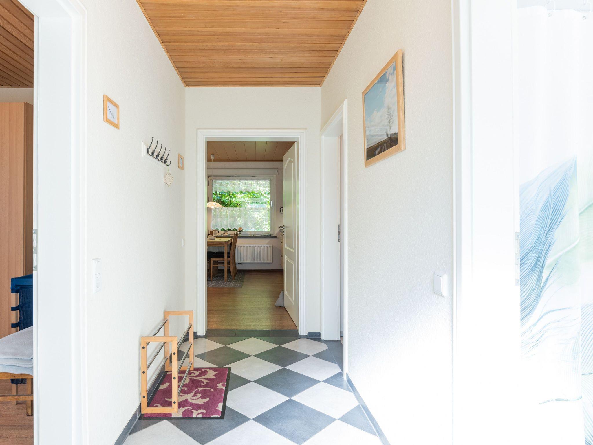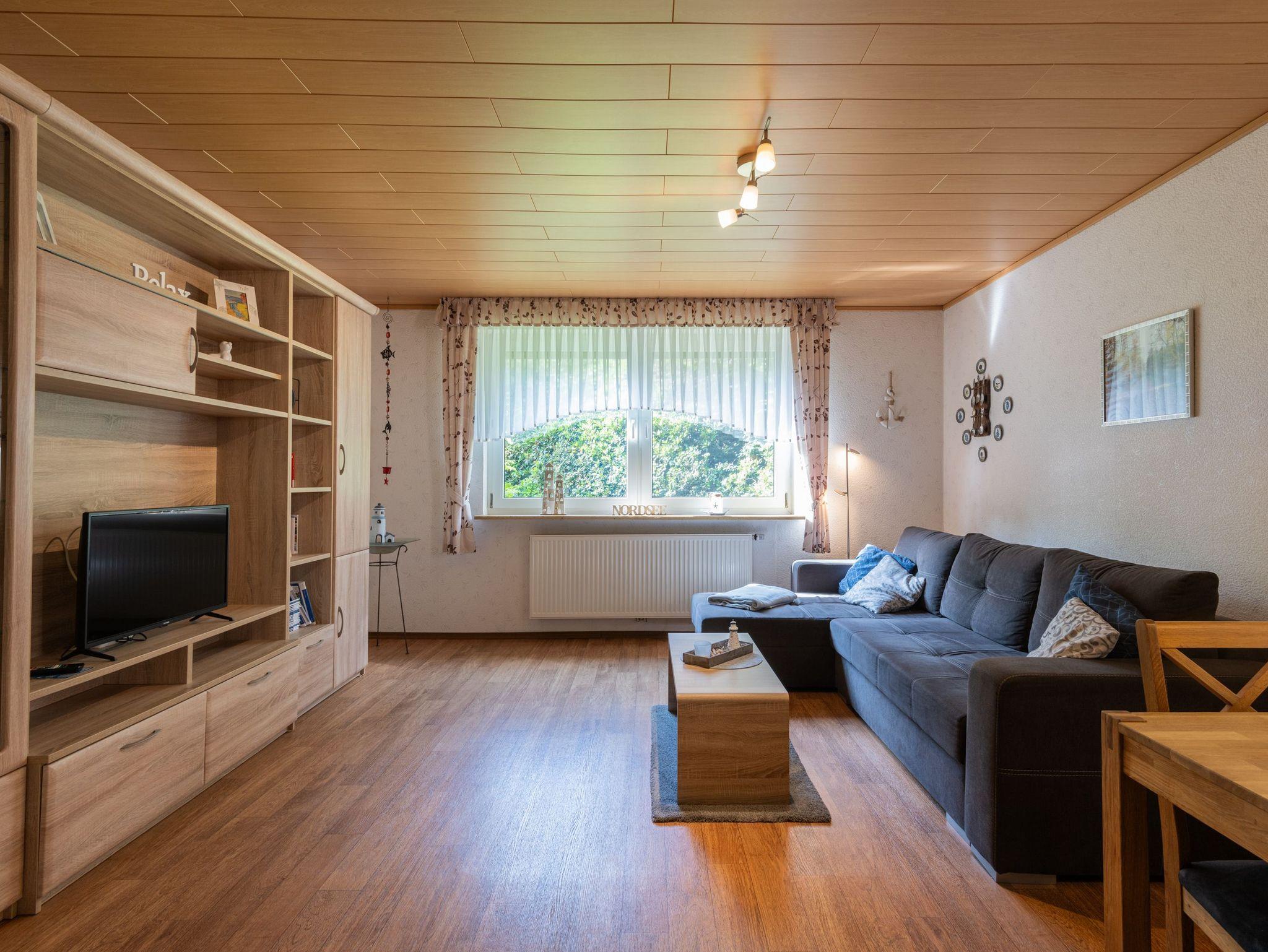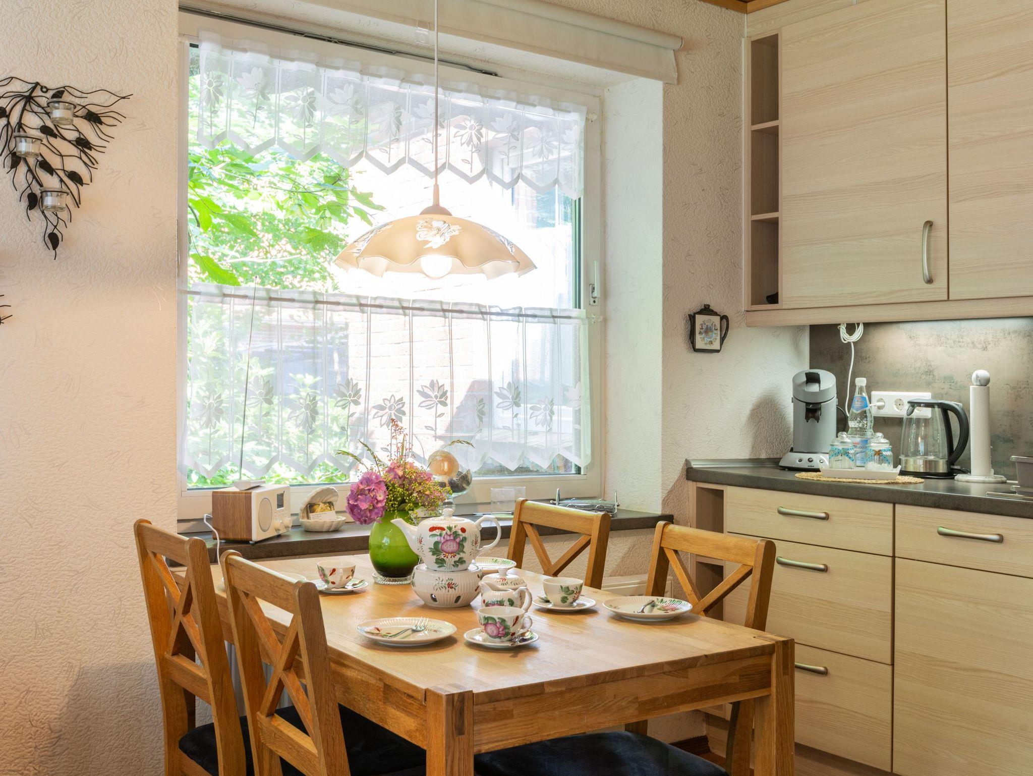 Ruhig gelegene, schön eingerichtete Ferienwohnung im Erdgeschoß. Keine Stufen im Eingangsbereich, daher auch für Rollstuhlfahrer geeignet. Große Wohnküche mit einer gemütlichen Sitzgarnitur/Schlafcouch (1,60 x 2,00 m), einer komplett eingerichteten und modernen Einbauküche mit Spülmaschine, Mikrowelle, Gefrierschrank, ... und einem Esstisch mit vier Stühlen. Ein großes Schlafzimmer großem Schrank und einem Doppelbett (2,00 x 1,80 m) zusätzlich befindet sich dort noch ein Kinderbett (Fliegengitter vor dem Fenster). Das Badezimmer ist ausgestattet mit einer Badewanne, Dusche und einer Toilette. Im Garten befindet sich eine Terrasse mit einer Gartengarnitur und zwei Gartenliegen. Den Gästen steht ein separater Abstellraum mit Waschmaschine und Trockner (Nutzungsgebühr 5,00 EUR) zur Verfügung. Für Angler gibt es mehrere Angelgewässer in der Nähe - Gastfischereierlaubnisscheine erhalten in örtlichen Tourist-Information.
