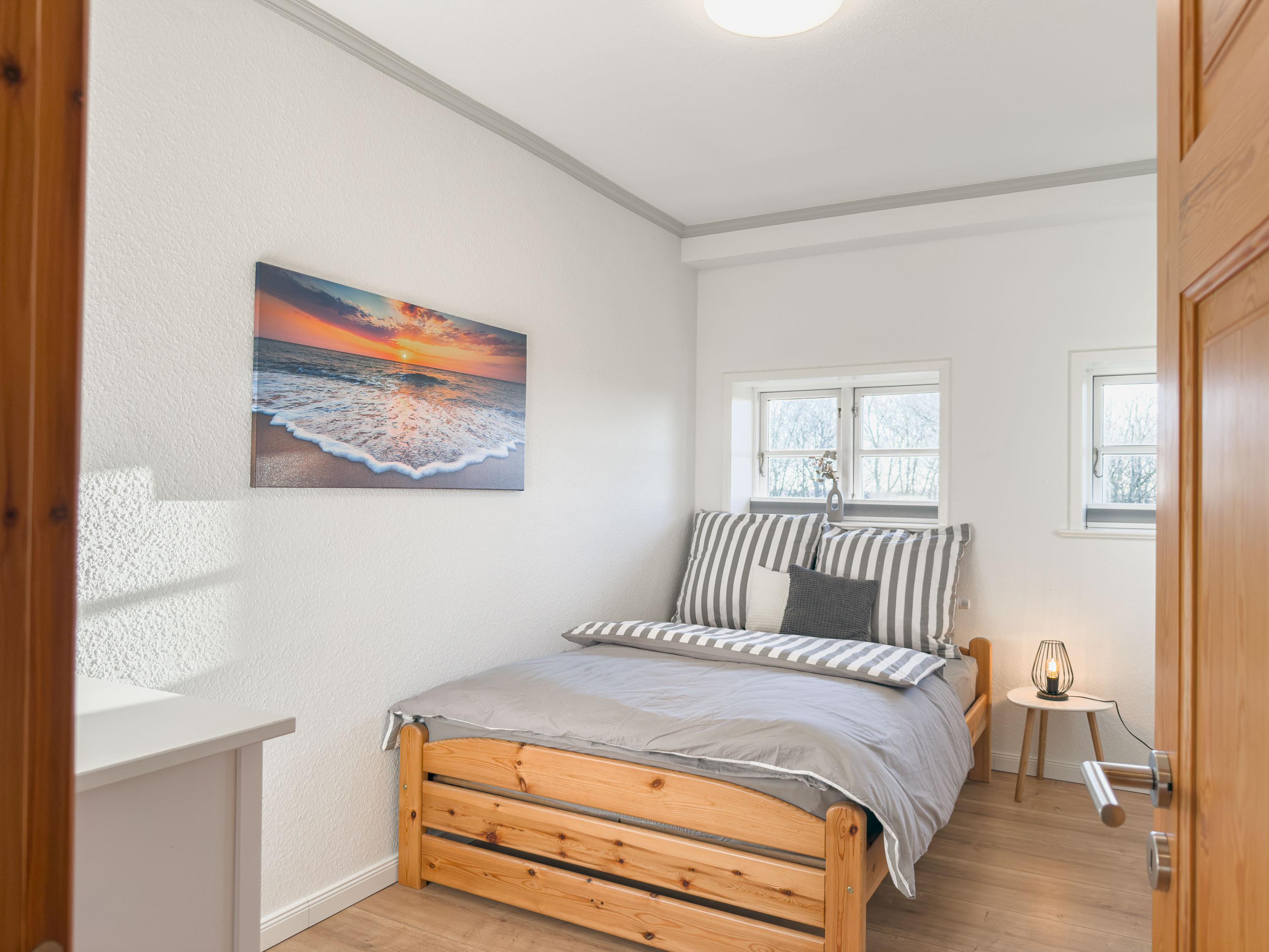 Zwei Schlafzimmer sind mit komfortablen Doppelbett in der Größe 180 × 200 cm ausgestattet, das dritte Schlafzimmer verfügt über ein Bett in 140 × 200 cm.
