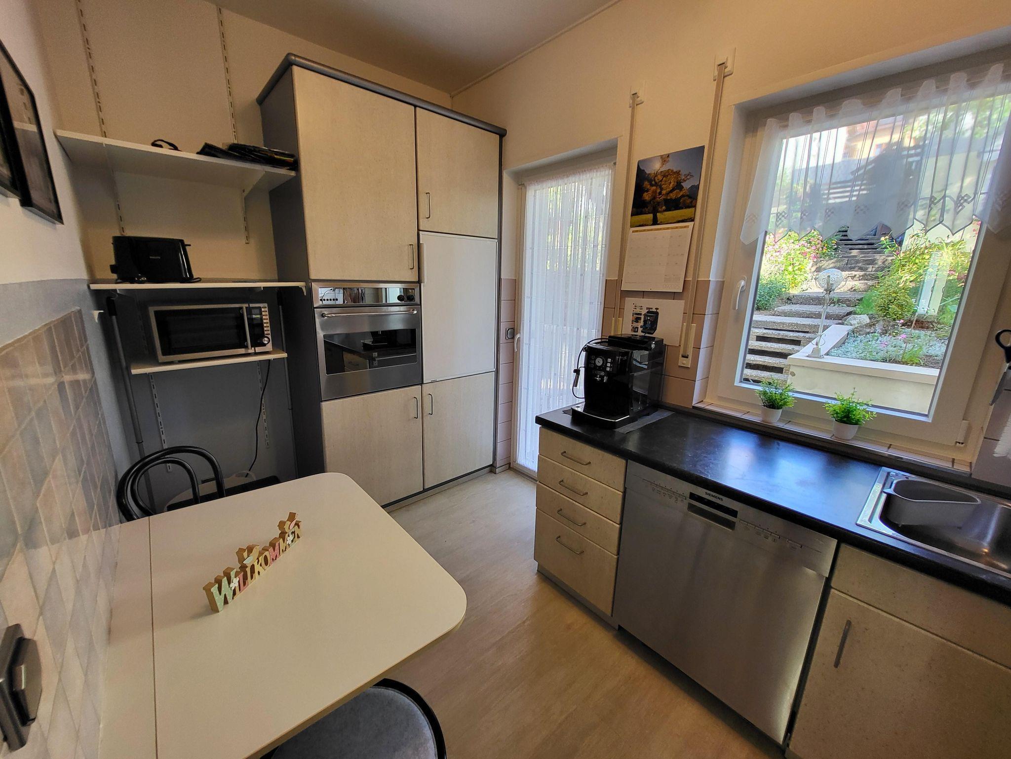 Die Küche ist komplett ausgestattet (Spülmaschine, Kühlschrank, Cerankochfeld, Backofen, Mikrowelle, Kaffeemaschine, Toaster etc.).