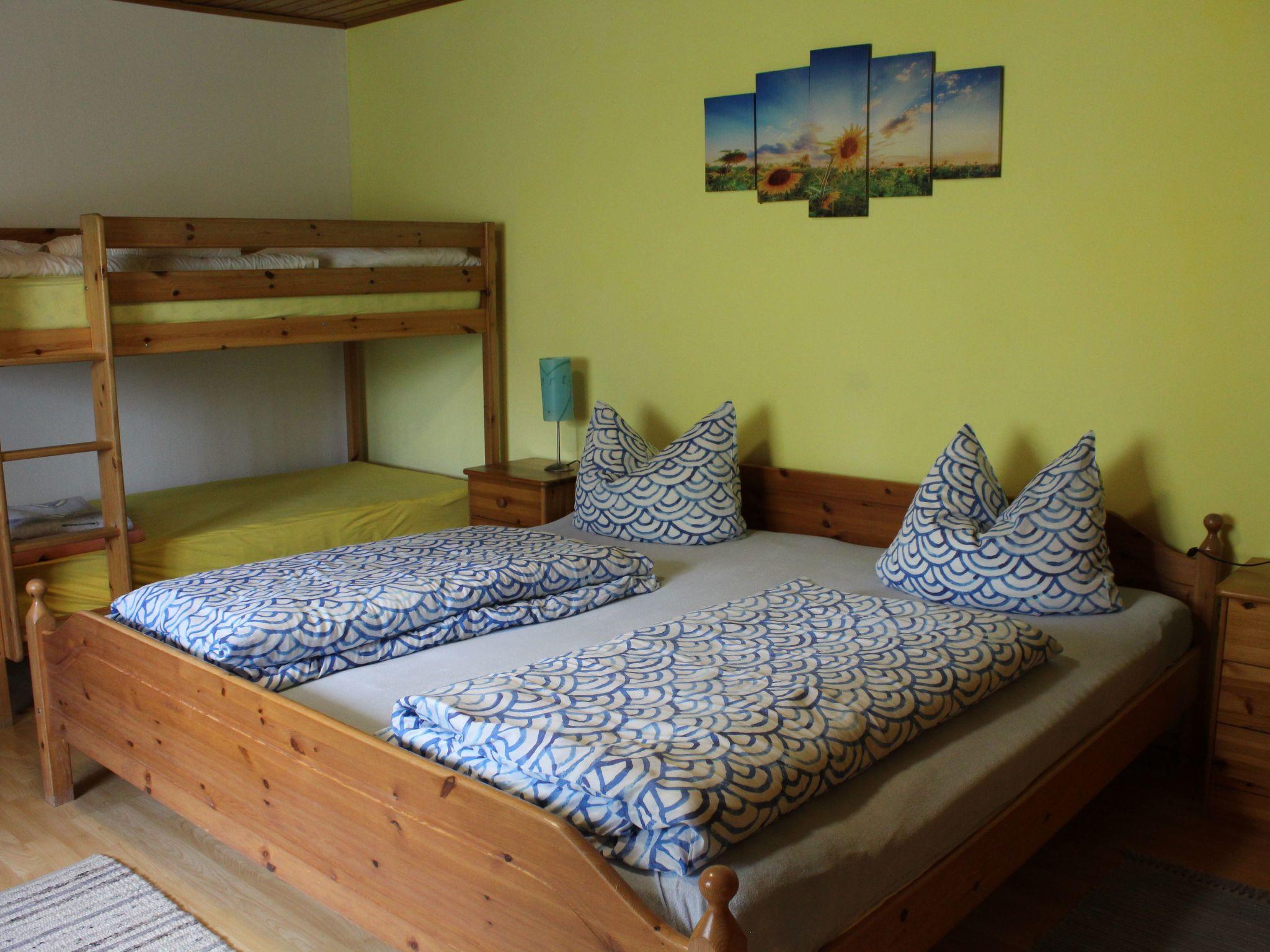 A balcony and a large terrace with garden house and barbecue, a small playground with swing, trampoline, sandpit and much more offers you and your family the opportunity to relax in the fresh air. Since 2020, an outdoor pool (weather permitting) has also been available to our guests.small petting zoo (dog, cats, chickens)Hiking trails start from the house, also ideal for walking dogs!