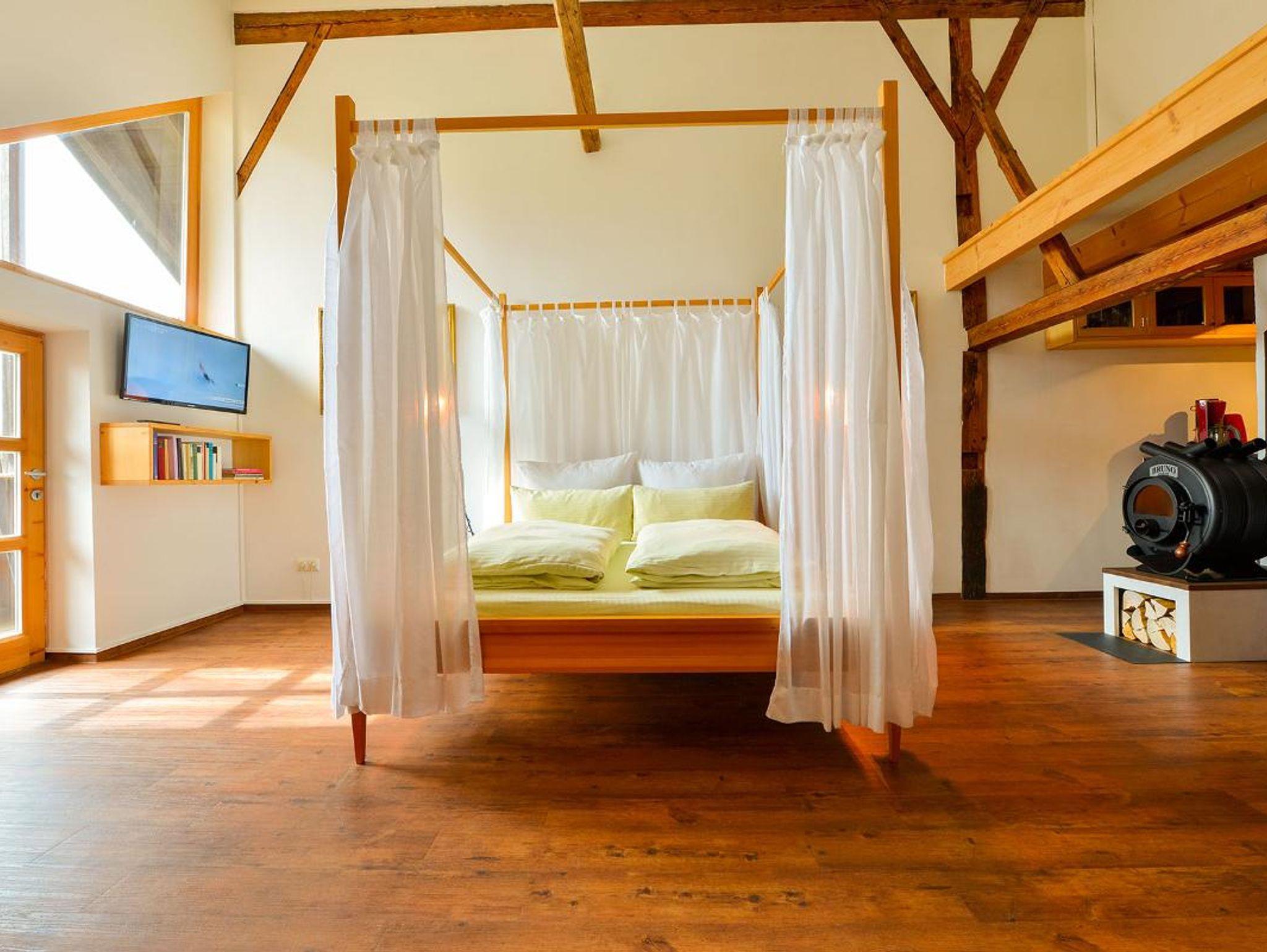 Auf dem Hof befinden sich 4 Ferienwohnungen, die mit viel Liebe zum Detail mit restaurierten Museumsstücken und modernen Elementen eingerichtet wurden. Die Appartemens sind mit SAT-TV, CD-Radio und kostenlosem WLAN ausgestattet. Jede Ferienwohnung hat einen eigenen Namen, eine eigene kulturhistorische Bedeutung. Kunst, Tradition, Geschichte und gelebte Kreativität sind wiederholt dialogisches Wechselspiel im Hofatelier Menacher, diesem einzigartigen Rückzugsort, diesem wundervollen Ort für Inspiration und tiefer Entspannung. Ganz im Zusammenspiel von Landschaft, Baudenkmal Höpflhof und guter Seele des Toni Menacher.