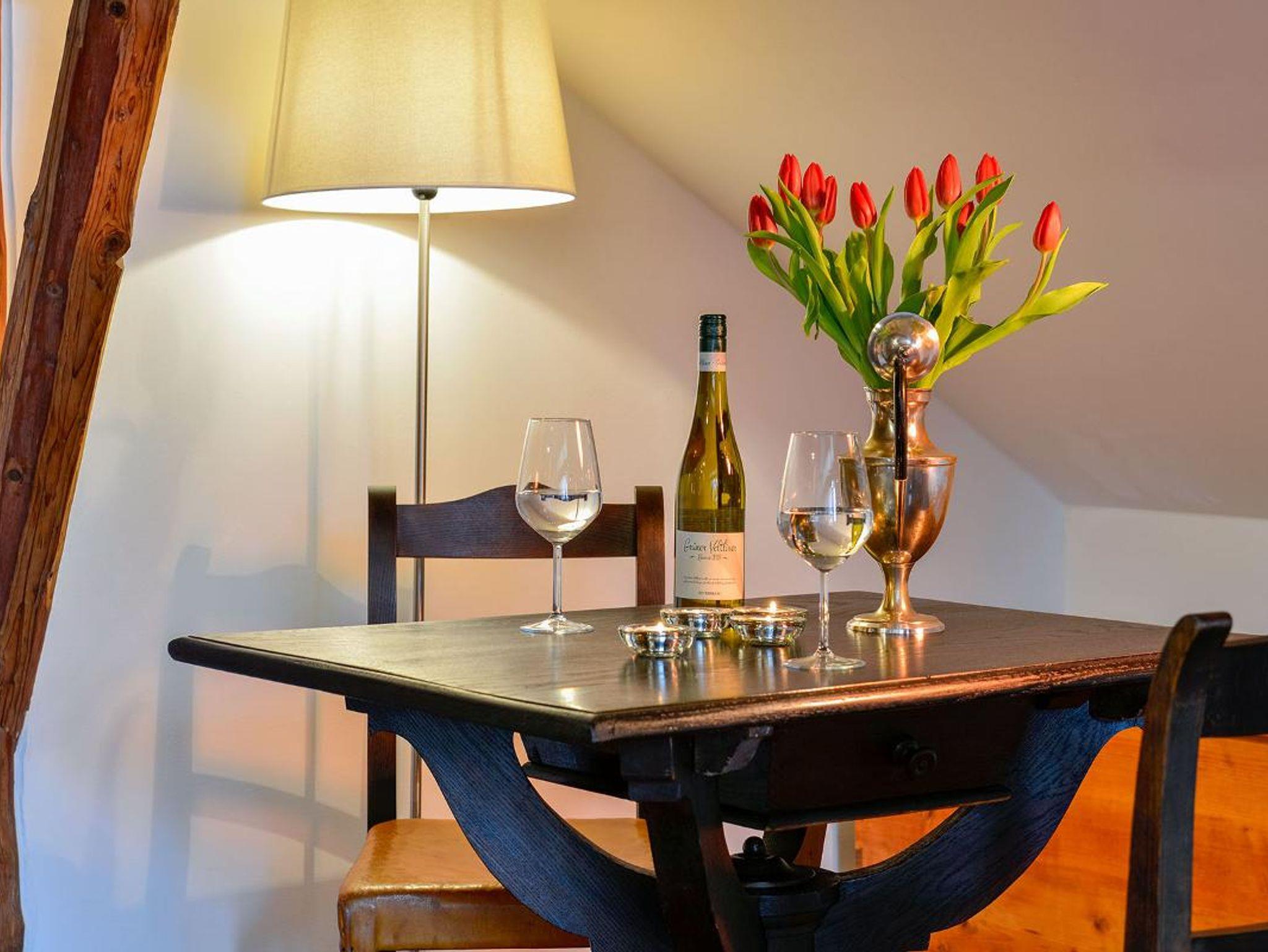 Auf dem Südbalkon mit Blick ins Esel-Gehege und über weiten Wiesen und Felder kann man zum Beispiel bei einem guten Frühstück oder einem Glas Wein herrlich entspannen und die schnelle Welt jenseits des Gehöfts eben so schnell hinter sich lassen.