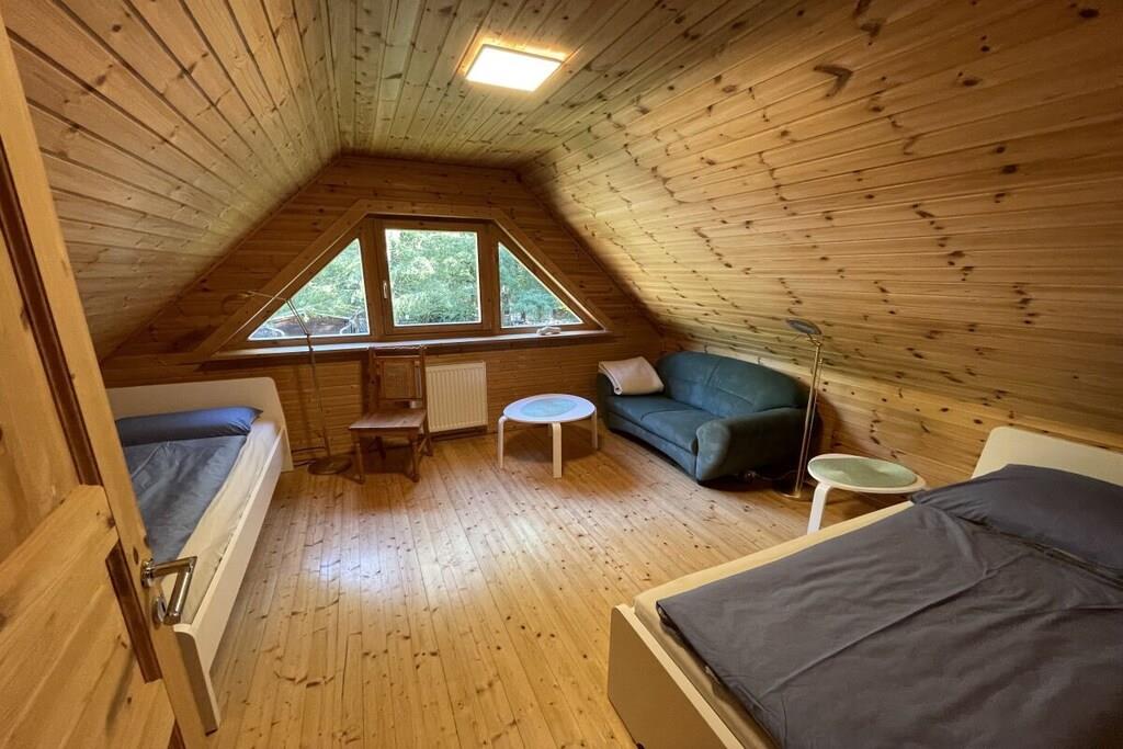 Første etasje: (entré(, ), Kjøkken(, , , , Åpent kjøkke, vedovn, komfyr med kokeplater, vannkoker, brødrister, komfyr, kaffetrakter, stekovn, mikrobølgeovn, oppvaskmaskin, kjøleskap, fryser, fryser, insekt skjermer, Kjøkkenmaskin), Stue/spisestue(, , , TV, TV, spisebord, DVD-spiller, DVD-spiller, video, Blu-ray-spiller, radio, CD-spiller, stereo, markise, insekt skjermer), bad(, , WC, dusj, dusj, håndvask, Hårtørker), oppvarming(, tørketrommel, tørkeskap)) Loftet: (soveværelse(, , dobbeltseng, radio, insekt skjermer), soveværelse(, , enkeltseng, enkeltseng, insekt skjermer)) , , , , Internett-tilgang, Førstehjelp, balkon(hagemøbler), oppvarming, terrasse(, Grill center, Bordtennis, Plen, peisen, grill, grill, sprinkelseng, hagemøbler, solsenge, damm, markise), hage(Grill center, Bordtennis, peisen, stereo, grill, grill, hagemøbler, solsenge, damm), parkering, strykebrett, strykejern, tørkeskap, Ladestolpe for el-biler, Vaskeripakke mot et gebyr