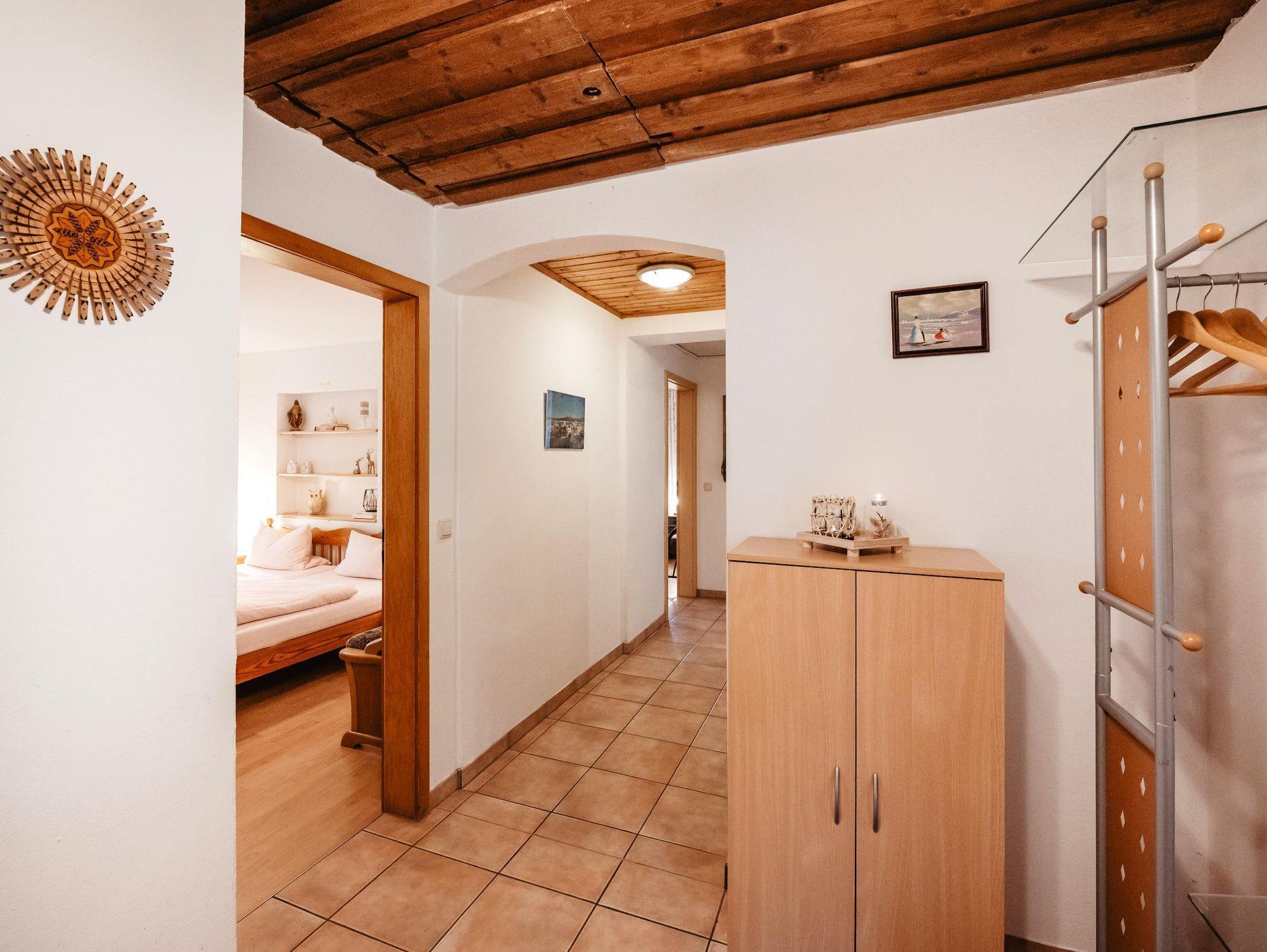 Unsere Ferienwohnung mit 75m² Wohnfläche bietet Platz für bis zu 5 Personen. 2 weitere Kinderbetten stehen auf Anfrage zur Verfügung. Das gemütliche Wohnzimmer mit Essecke, Sofa und Fernseher lädt zum Verweilen ein. Die komplett ausgestattete Küche mit Geschirrspüler, Kühlschrank inkl. Gefrierfach, Elektroherd, Backofen, Mikrowelle, Wasserkocher, Toaster, Mixer und Kaffeemaschine lässt keine Wünsche offen. Die Ferienwohnung verfügt über 2 Schlafzimmer. In einem Schlafzimmer befindet sich ein Doppelbett. Das zweite Schlafzimmer ist mit einem Doppelbett und einem Einzelbett ausgestattet. Das geräumige Badezimmer mit Dusche, Badewanne, WC und Handtuchtrockner rundet das Gesamtbild ab. Zum Reinigen Ihrer Kleidung steht eine Waschmaschine auf Anfrage zur Verfügung. Vor allem im Sommer können Sie entspannte Grillabende auf der Terrasse verbringen. Gartenmöbel sind vorhanden. Bitte beachten Sie, dass Haustiere nur auf Anfrage erlaubt sind. Das WLAN und den Parkplatz vor dem Haus können Sie kostenfrei nutzen.
