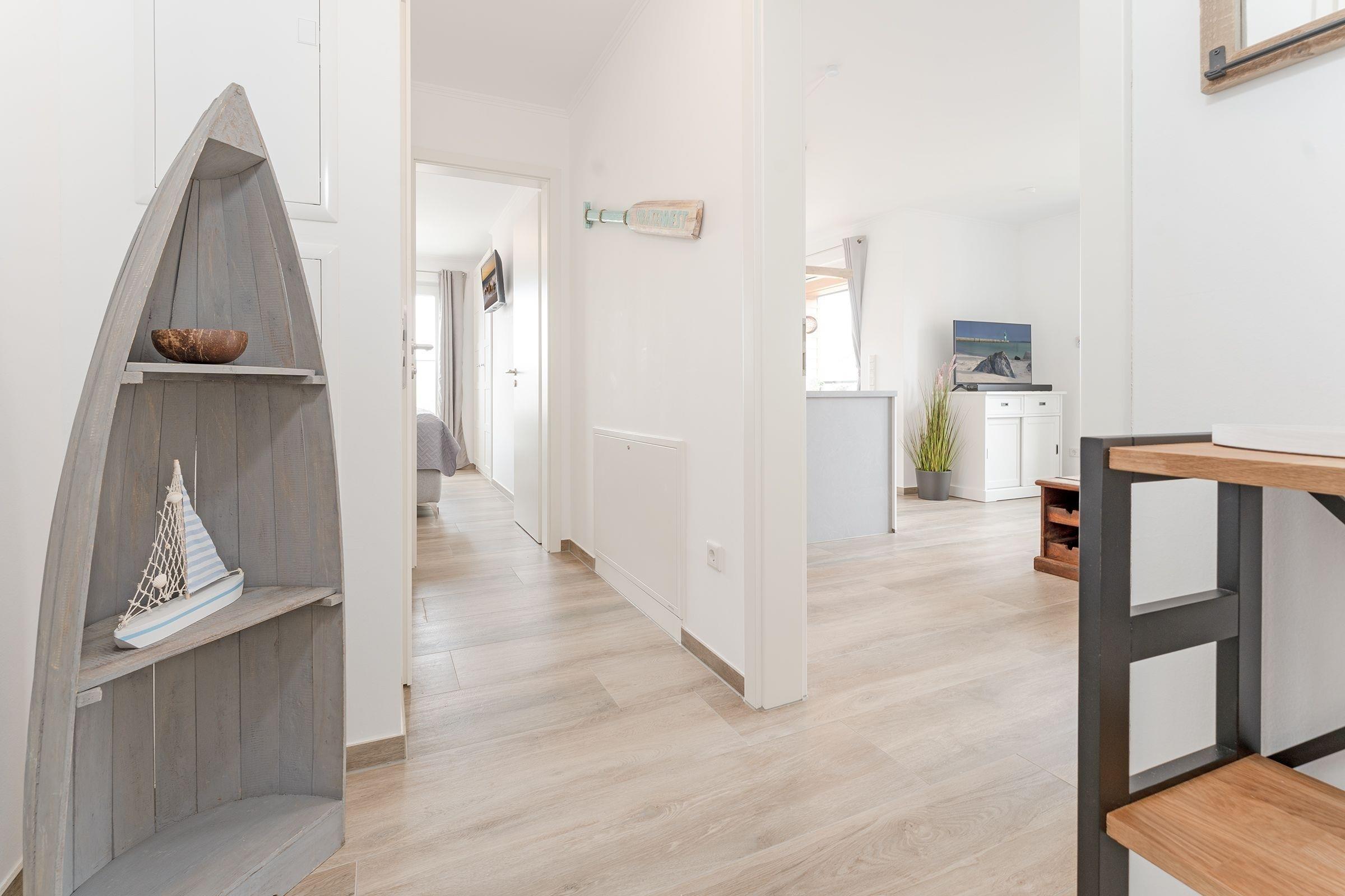 Willkommen an Bord – in der Wohnung Piratennest trifft guter Geschmack auf Gemütlichkeit. Die moderne, hochwertige Einrichtung mit Fußbodenheizung sorgt für das richtige Urlaubsgefühl. Im lichtdurchfluteten Wohnzimmer wartet eine gemütliche TV-Ecke auf Sie. Die edle, offene Küche erfreut mit Extras wie Induktionsherd, Espressomaschine (Tassimo) und Geschirrspüler jeden Hobby-Koch. Genau daneben können Sie speisen – mit Blick in Richtung Ancora Marina Hafen. Oder Sie nehmen auf dem möblierten Balkon Platz und lassen sich dazu die gute Seeluft um die Nase wehen. Im Schlafzimmer steht ein Boxspring-Doppelbett (180x200 cm) und das Sofa im Wohnzimmer bietet einen weiteren Schlafplatz (160x200 cm). Verdunkelt wird jeweils mit elektr. Außenjalousien. Für einen guten Start in den Tag sorgt das komfortable Duschbad.