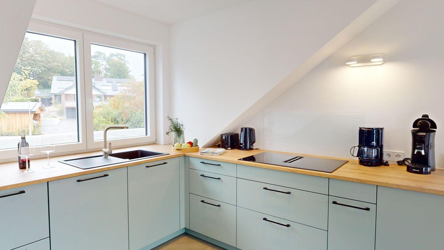 Ein großzügiges Wohnzimmer mit offener Küche und ein modernes Bad mit stufenloser Dusche warten auf Sie. Das Schlafzimmer hat ein komfortables Doppelbett und sorgt für erholsame Nächte. In dem zweiten Schlafzimmer finden Sie eine praktische ausziehbare Couch, die sich tagsüber in eine gemütliche Sitzgelegenheit verwandeln lässt und nachts bequemen Schlafplatz für zwei Personen bietet. Zimmer ist geschmackvoll eingerichtet und bietet ausreichend Stauraum für Ihre persönlichen Dinge.Helles Holzparkett, dänische Designermöbel und große bodentiefe Südfenster verbreiten Urlaubsstimmung. Die Wohnung ist ausgestattet mit einem Glasfaseranschluss, schnellem W-LAN und Smart-TV. Für Home-Office-Freunde gibt es auch einen integrierten Arbeitsplatz. Zusätzlich steht Ihnen im Badezimmer eine Waschmaschine zur Verfügung.