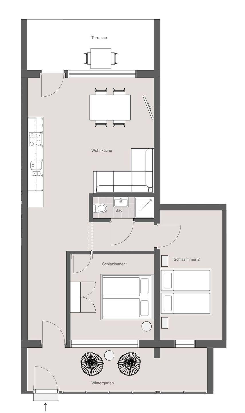Dieses geräumige Apartment befindet sich im Erdgeschoss und hat einen Größe von 70 m². Es ist ideal für Familien oder deine Workation und bietet auf zwei Schlafzimmern und einem großen Wohn- und Essbereich viel Platz zum Entspannen und Beisammensein. Die stilvoll eingerichteten Räume vereinen modernen Komfort mit liebevoll restaurierten Möbeln, die dem Apartment seinen ganz eigenen Charme verleihen. Der Wohnbereich lädt mit seiner gemütlichen Sitzecke und dem großen Esstisch zu gemeinsamen Abenden oder entspannten Stunden ein, während du durch die Fenster den Blick in die Natur genießt.