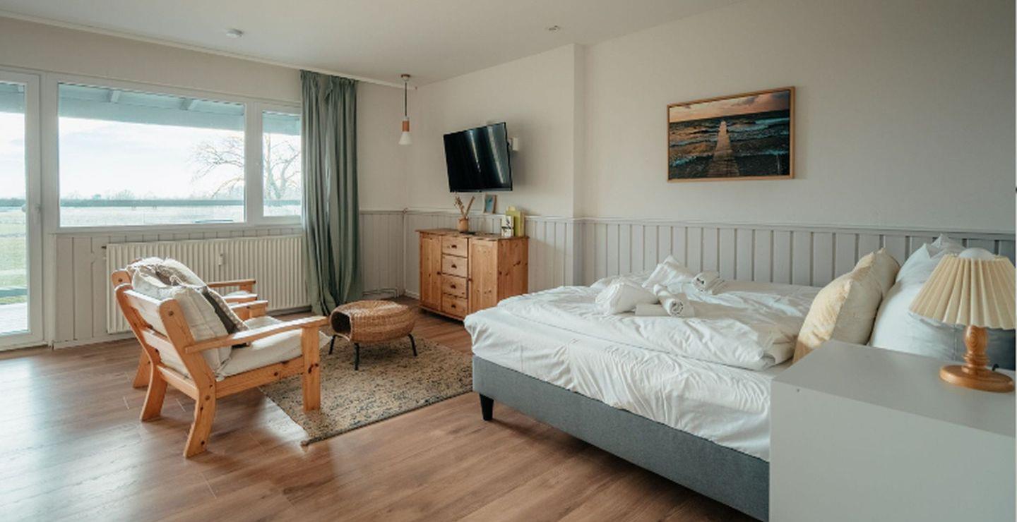 Das Apartment Landhaus in der Strandkoje Rettin vereint ländlichen Charme mit modernem Komfort. Helle Räume, eine stilvolle Einrichtung und der Blick ins Grüne schaffen eine entspannte Atmosphäre, perfekt für Gäste, die Erholung in naturnaher Umgebung und Strandnähe suchen.