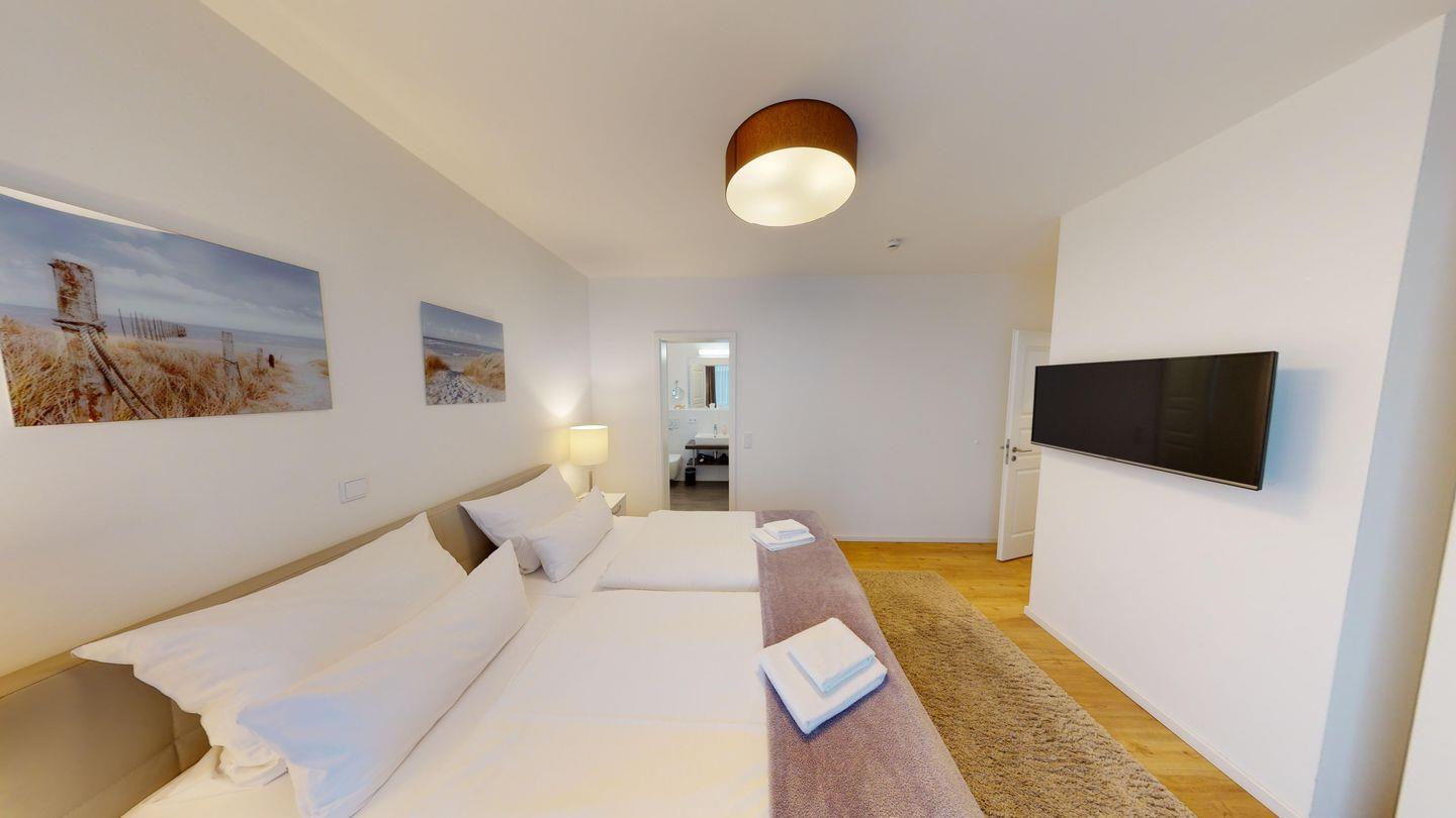 Moderne, helle Ferienwohnung für 4 Personen mit Terrasse & 2 Schlafzimmern direkt an der Ostsee -Meerblick & Tiefgaragenstellplatz.