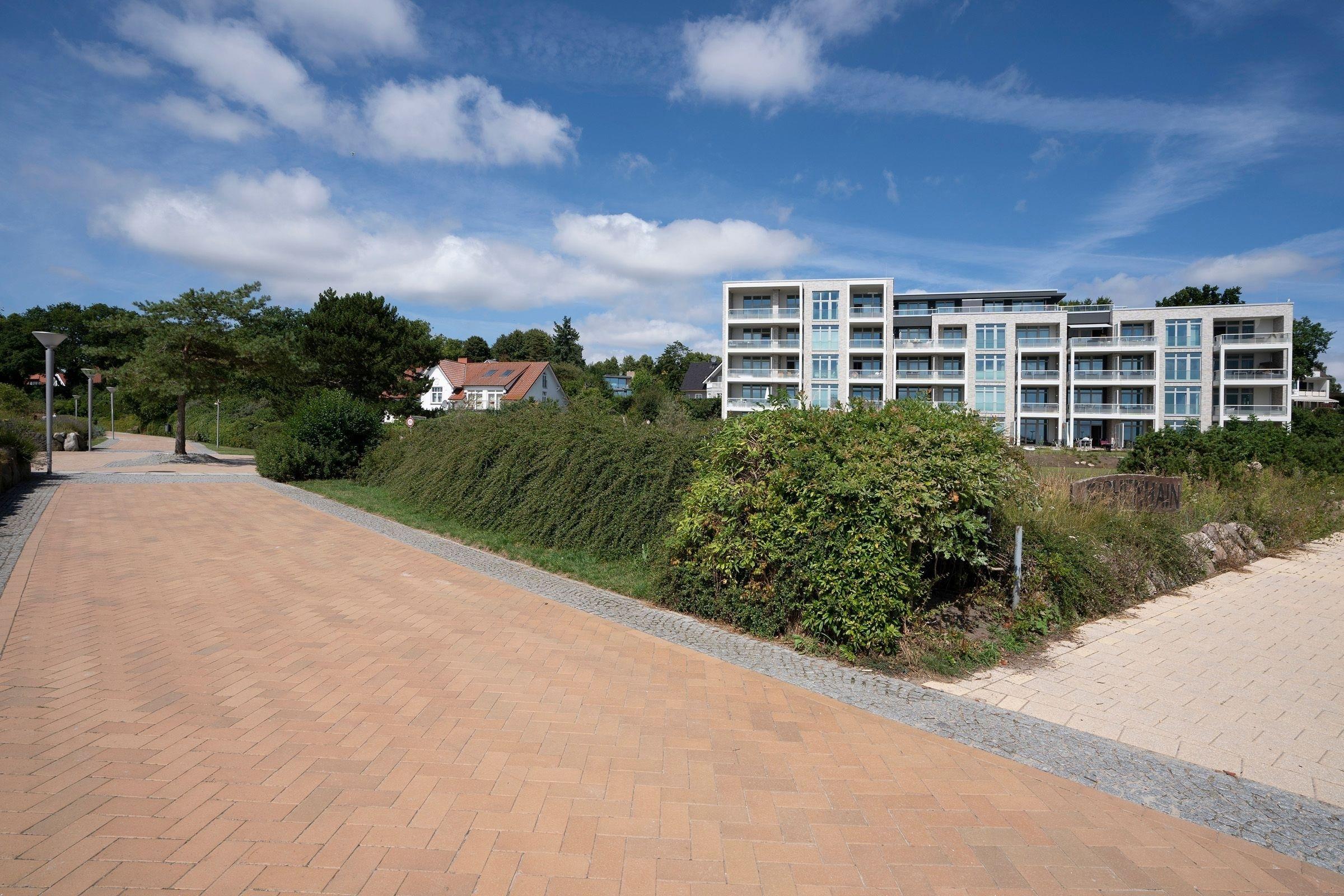 Der kombinierte Wohn- und Essbereich ist stets lichtdurchflutet und grenzt offen an die voll ausgestattete Küchenzeile. Unmittelbar vor der großen Fensterfront mit Blick auf die Ostsee steht Ihnen ein komfortables Sofa (Schlafmöglichkeit, 140x200 cm) mit Sichtschutzplissees zur Verfügung. Ein großer Flachbildfernseher sorgt für Unterhaltung. Das separate Schlafzimmer mit Doppelbett (2x 90x200 cm), Verdunkelungsgardinen und Kleiderschrank bietet Ihnen ebenfalls Zugang zum Balkon. Das innenliegende Badezimmer erwartet Sie mit WC, bodengleicher Dusche und beheizbarem Handtuchhalter. Viele erholsame Stunden können Sie auf dem überdachten, möblierten Balkon verbringen und dabei den Ausblick auf die Ostsee genießen. Den Gästen im Eichenhain steht außerdem ein gemeinschaftlich genutzter Garten inklusive Sandspielplatz zur Verfügung.