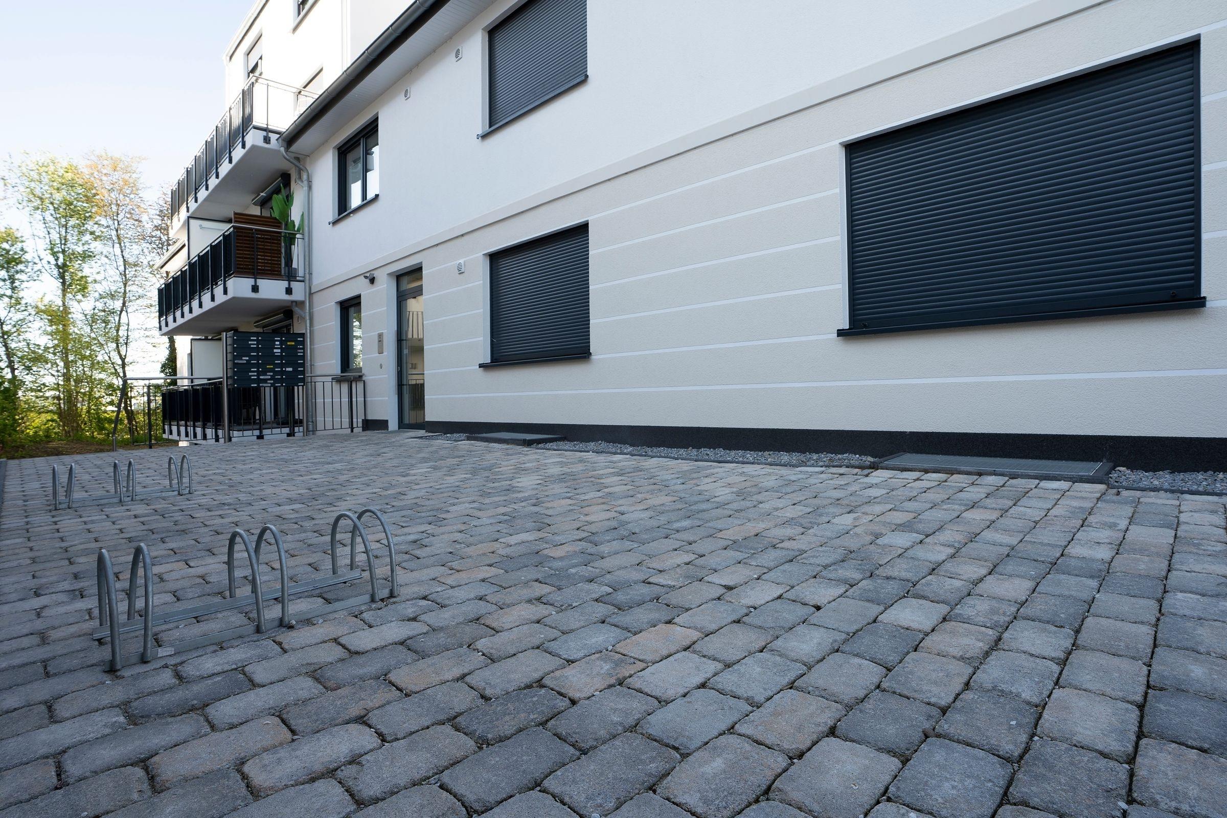 Ein PKW-Außenstellplatz (Maße: ca. 2,5 m x 5 m) ist für Sie reserviert. Ihre mitgebrachten Fahrräder stellen Sie sicher in einem abschließbaren Kellerraum unter.