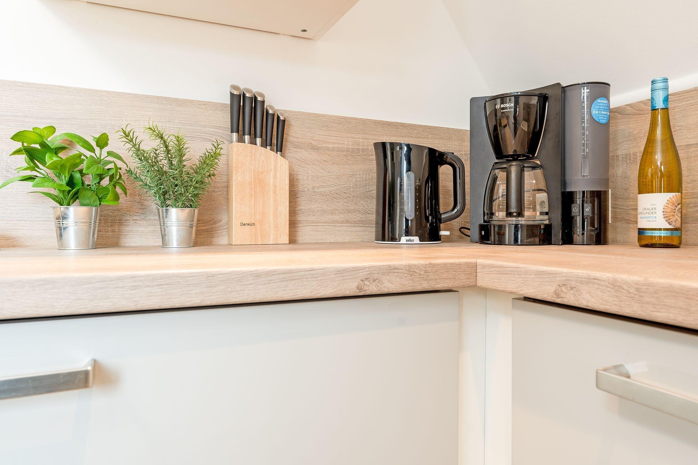 Hereinspaziert! Die Wohnung empfängt Sie mit gemütlichem Wohnbereich mit offener Küchenzeile, die mit allem ausgestattet ist, was Sie für die Zubereitung Ihrer Mahlzeiten benötigen. Die Couch kann bei Bedarf zu einem weiteren Schlafplatz (ca. 223x146 cm) verwandelt werden, ein Fernseher sorgt hier für ausreichend Unterhaltung. Das separate Schlafzimmer ist mit einem Doppelbett (180x200 cm, durchgehende Matratze) ausgestattet, Ihre Urlaubsgarderobe können Sie im geräumigen Kleiderschrank verstauen. Im hellen Tageslichtbad steht eine bodentiefe Dusche bereit und sorgt für einen guten Start in den neuen Urlaubstag.