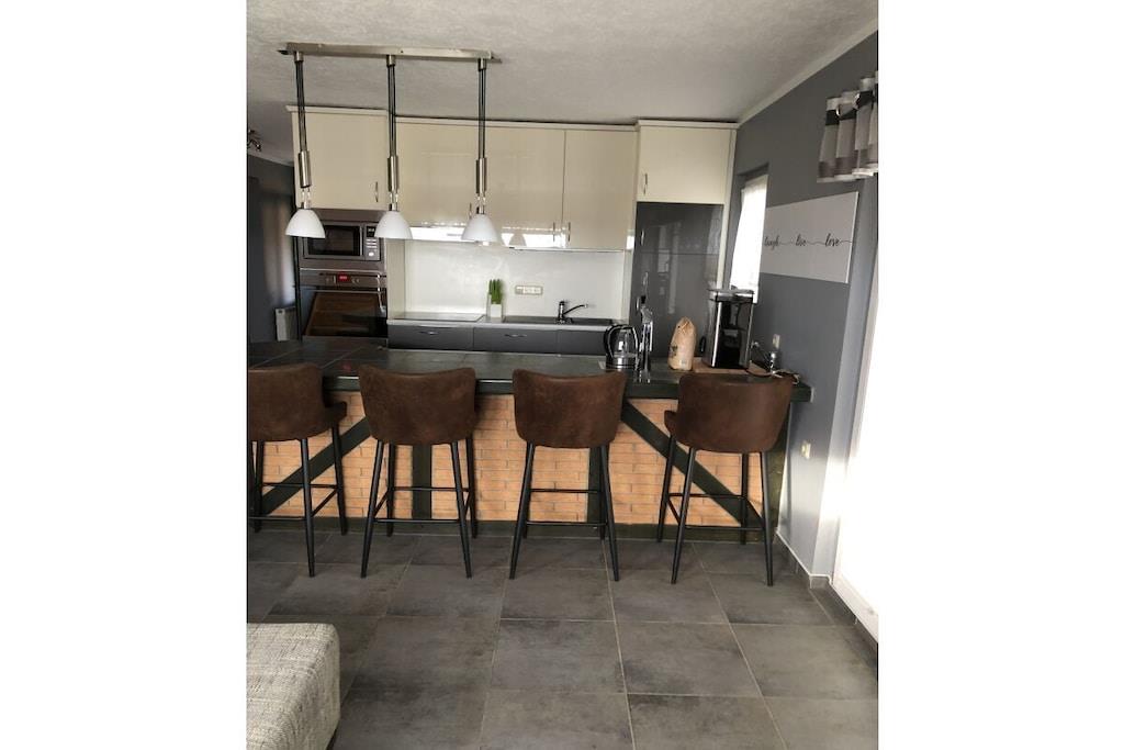 Unser Ferienhaus ist 2021 und 2022 renoviert und mit neuem Mobiliar, Matratzen und Accessoires ausgestattet worden. Es sind 2 Schlafzimmer mit Doppelbett, ein Schlafzimmer mit 2 Einzelbetten, ein Schlafboden mit 2 Matratzen, 2 Bäder und ein offenes Wohnzimmer mit Kaminofen und voll ausgestatteter Küche vorhanden. Das Haus wurde 2019 mit einer neuen Brennwert-Gastherme ausgestattet, ein Kaminofen mit Holz betrieben kann im Wohnzimmer genutzt werden, sodass das Haus ganzjährig nutzbar ist. Hunde sind bei uns willkommen. Das Ferienhaus bietet mit 112 m2 viel Platz für 6 Personen. Aufbettungen für 2 Personen sind möglich. Kinder bis zur Vollendung des 3. Lebensjahres wohnen kostenlos. Kinder ab 12 Jahre zahlen den vollen Preis.