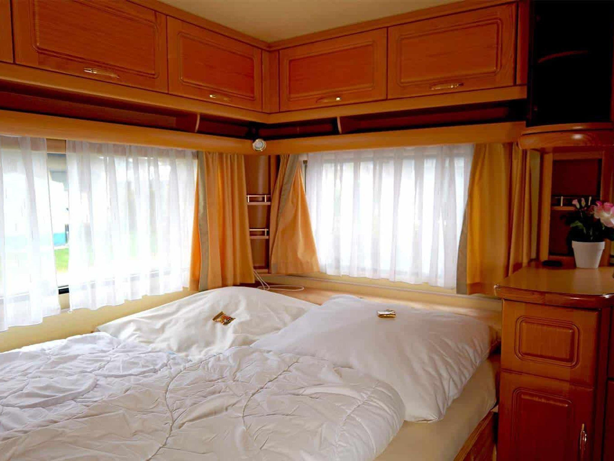 Hier schläfst du komfortabel im Wohnwagen. Es gibt zwei voneinander getrennte Doppelbetten. Gerne kannst du deine eigene Bettwäsche und Handtücher mitbringen oder sie bei uns dazubuchen. Im festen Vorbau wartet eine komplett eingerichtete Küche mit Essecke auf dich, ausgestattet mit Koch- und Essgeschirr. Ein TV gehört ebenfalls zur Einrichtung. Ein kleines Badezimmer mit WC und Handwaschbecken sorgt für eine angenehme Wohlfühlatmosphäre (Duschen kannst du gegen ein kleines Entgelt in unseren Campingeinrichtungen). Eine Heizung sorgt dafür, dass es auch in der kalten Jahreszeit schön warm ist. Unter der überdachten Terrasse findest du gemütliche Sitzgelegenheiten, wo du auch grillen kannst. Diese Terrasse ist verschließbar, so dass dein Hund dort laufen kann. Dein Fahrzeug parkst du direkt am Objekt. Gerne kannst du deine eigene Bettwäsche und Handtücher mitbringen oder sie bei uns dazubuchen.