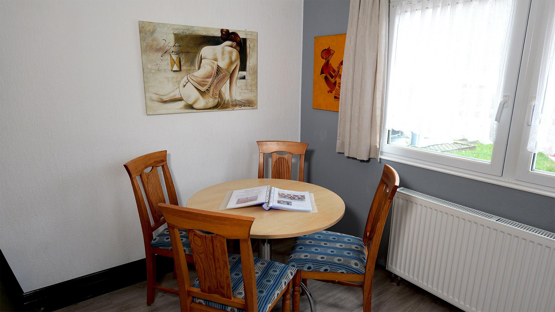 Über die neben dem Objekt beginnende Treppe erreichst du das SB & Café Hetzingen. Dort kannst du bis 20 Uhr über die Gäste-App Brötchen vorbestellen oder nach Absprache frühstücken.