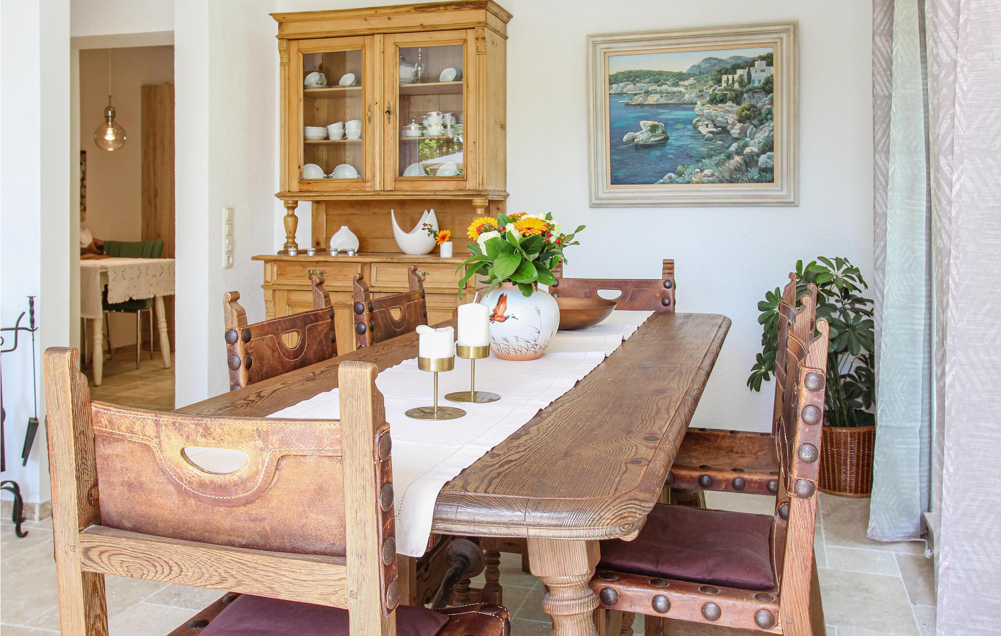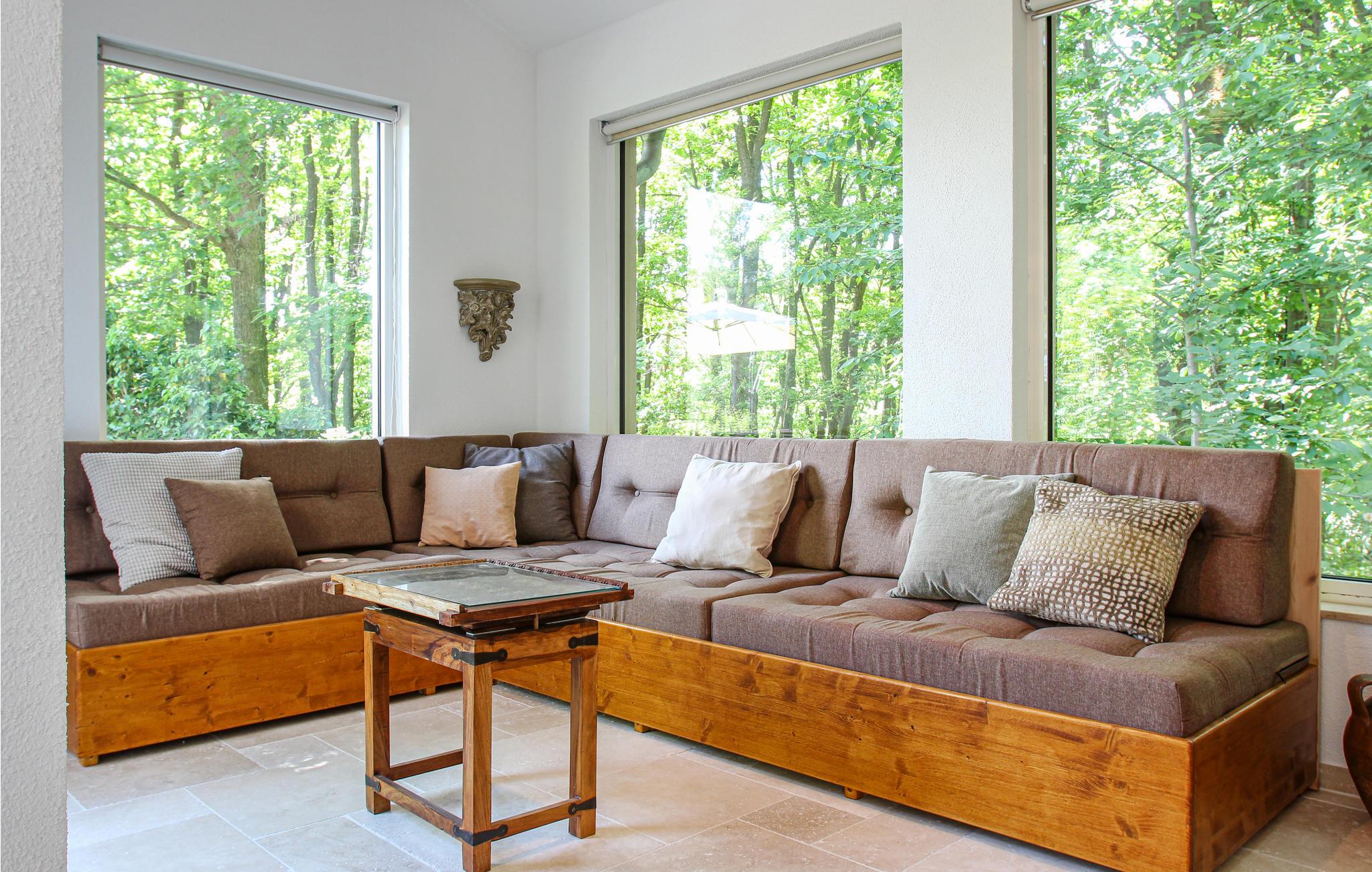 I dette huset som ligger på en skogkledd tomt, vil du tilbringe en ferie i særklasse. Det stilfullt innredede huset imponerer med store vinduer som slipper inn rikelig med naturlig lys, duse farger og vakre tremøbler. Enten du tilbereder deilige måltider på det moderne kjøkkenet, leser i vinterhagen eller bare nyter den koselige varmen fra peisen, vil du raskt lade batteriene her.