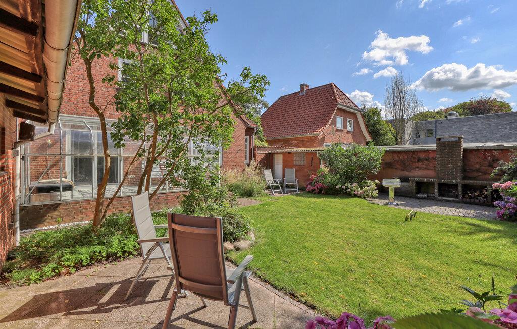 Utenfor finner du flere mindre terrasser med en vakker hage som er ideell for grilling og avslappende timer utendørs. Hvis det blir kaldere, kan du kose deg i vinterhagen. Hagen er inngjerdet og tilbyr god plass for barn å leke eller for en rolig ettermiddag med en god bok.