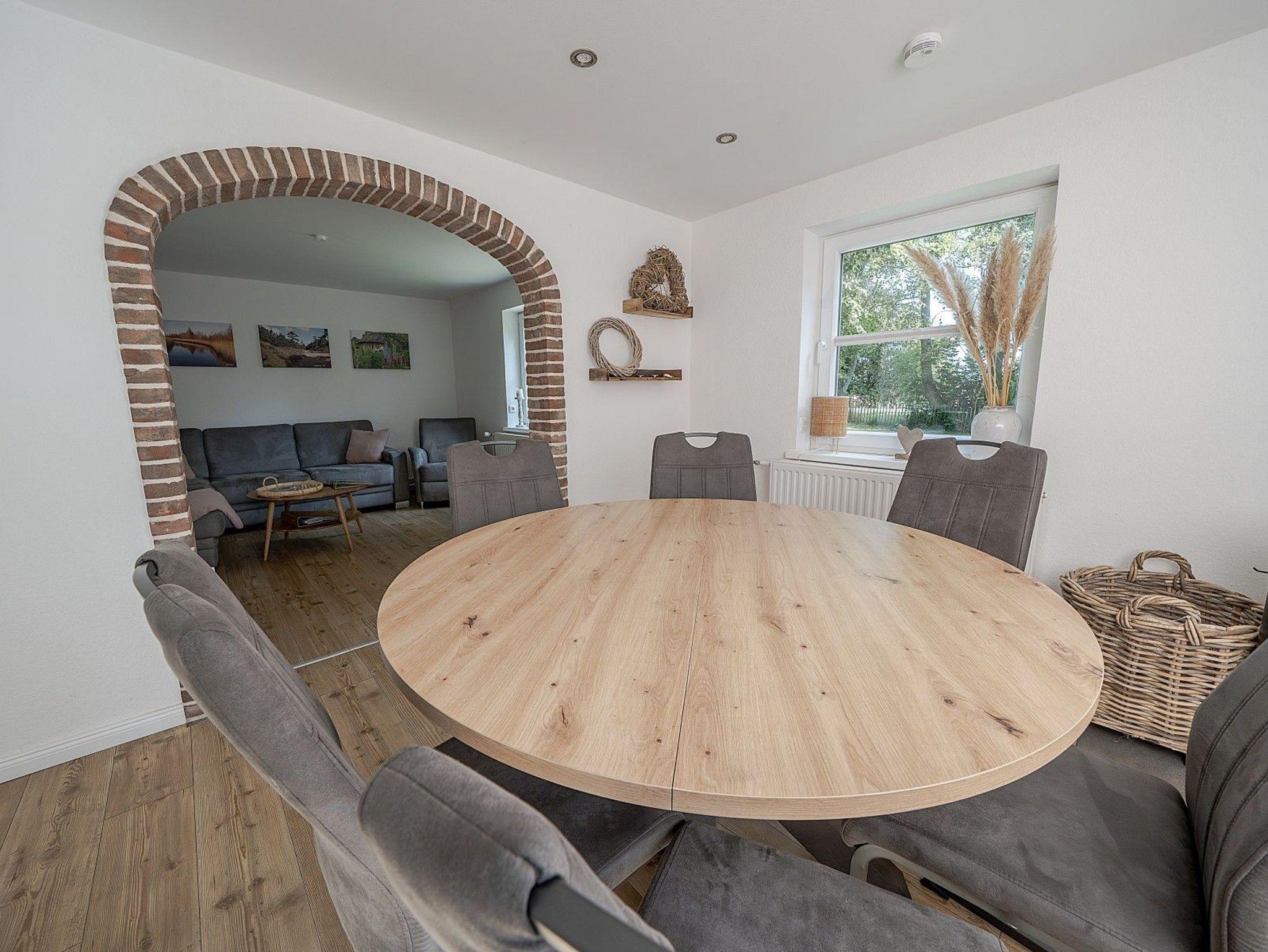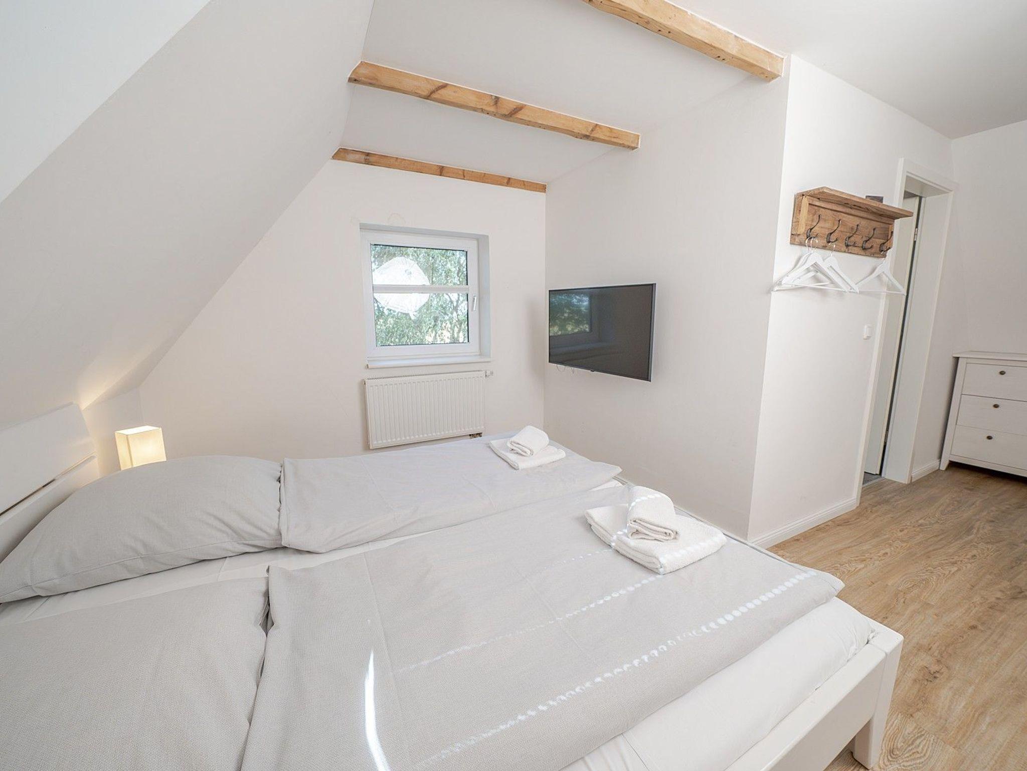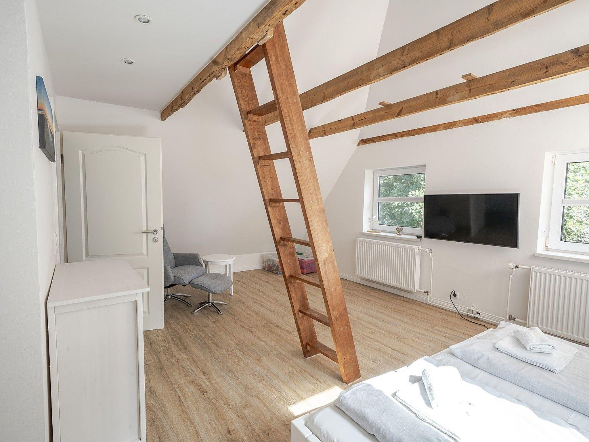 Das Haus bietet drei Schlafzimmer, zwei Badezimmer, einen großzügigen Wohnraum mit separatem Essplatz und Kaminofen sowie eine voll ausgestattete Küche mit zusätzlichem Esstisch. Im Garten mit Terrasse und Spielplatz genießen Sie entspannte Stunden im Freien. Besonders charmant ist die Schlafgelegenheit unter dem Spitzdach, die über eine Leiter erreichbar ist ? ein Highlight für Kinder oder Junggebliebene.