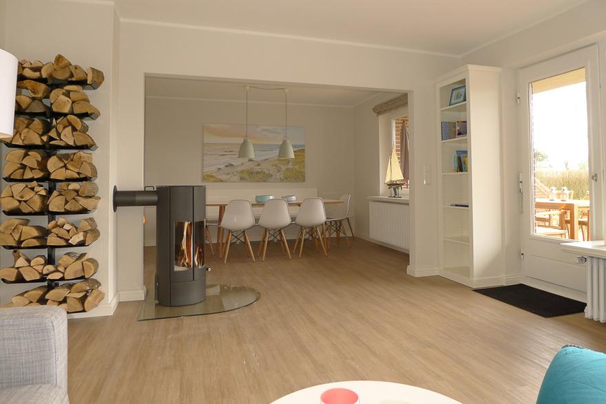 Der Küstenvogel "Knutt" - auch Knuttstrandläufer genannt - stand Pate für den Namen des Hauses. Er fühlt sich am Wattenmeer ganzjährig zu Hause. Seien Sie auch zu jeder Jahreszeit unser Gast und genießen die Insel und das Meer im kalten Winter, stürmischen Herbst, erwachenden Frühling und natürlich zur Strandkorbzeit im Sommer. Das Haus bietet der gesamten Familie Platz. Es wurde liebevoll eingerichtet, damit Sie sich wie zu Hause fühlen. Das Haus Knutt hat einen großen, nach Süden ausgerichteten Garten (über 1000 m²) mit einer großzügigen, windgeschützten Teakholzterrasse. Es besteht ein unverbauter Blick auf Wiesen und den Deich. Vom Balkon des Obergeschosses kann man das Meer sehen.