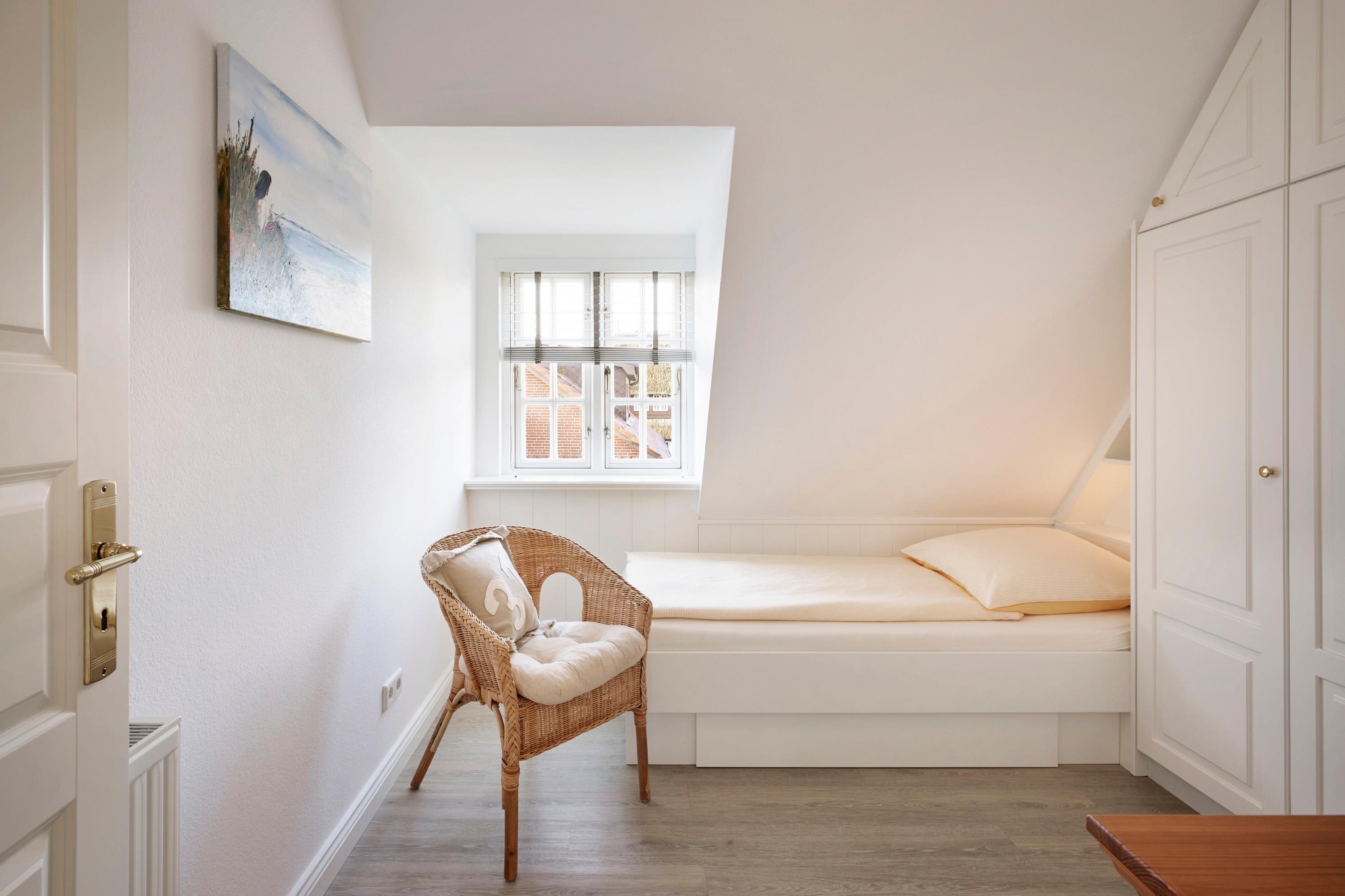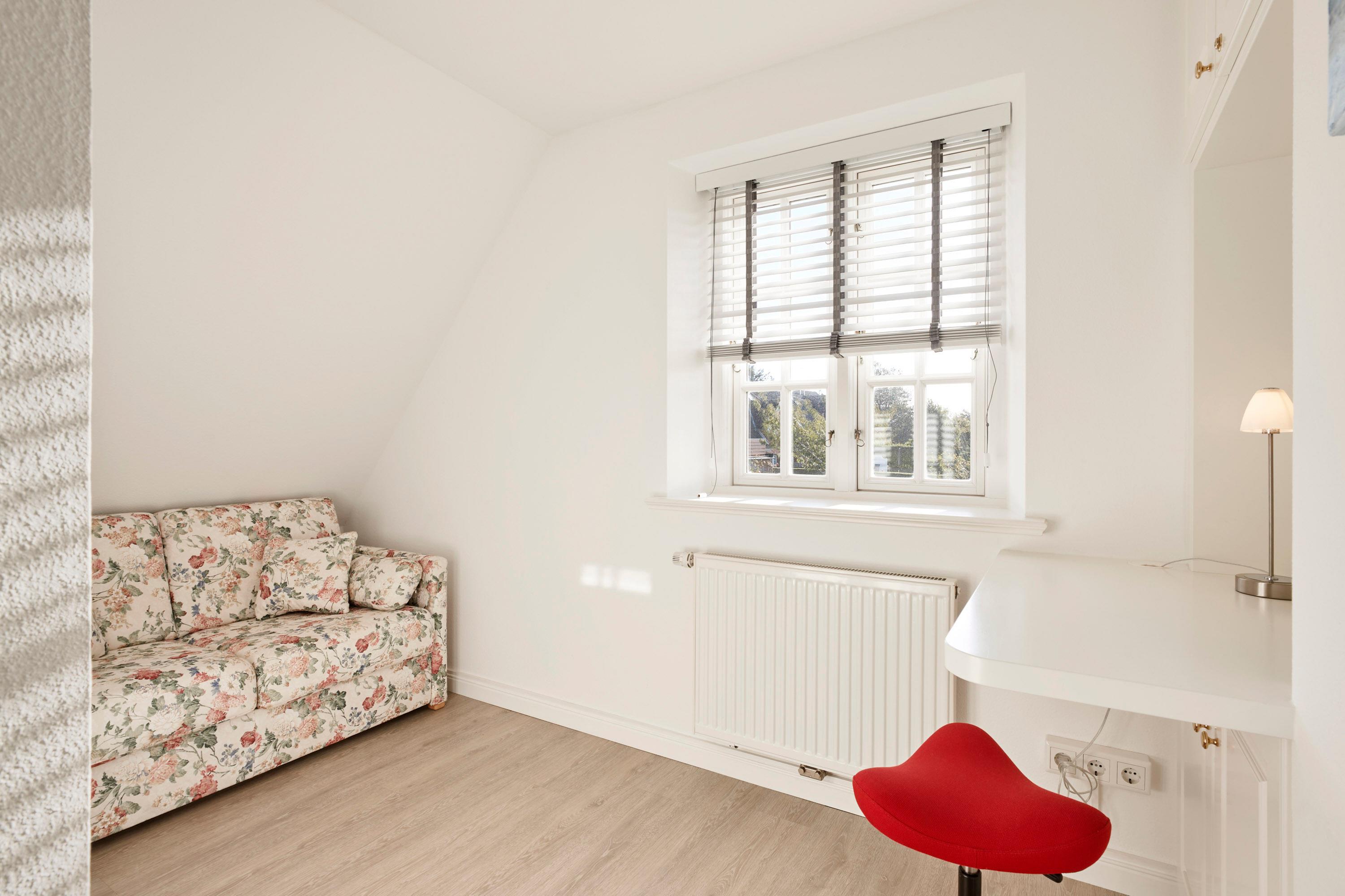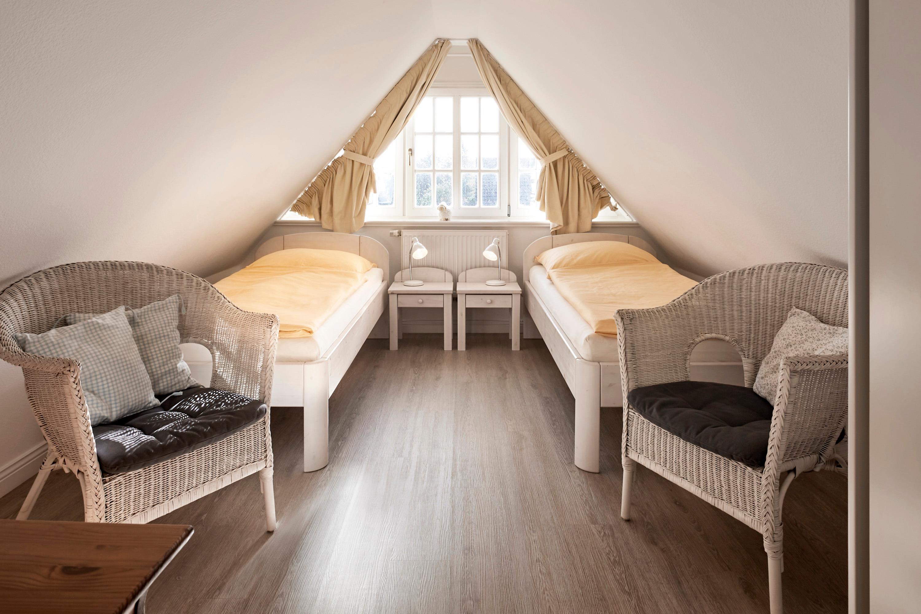 Ankommen, durchatmen und entspannen. Sie spüren sofort, dass unser Ferienhaus mit seiner komfortablen Möblierung und seinen lichtdurchfluteten Räumen ein besonderes Urlaubsparadies ist. Genießen Sie Ihren Urlaub im zeitlosen Charme unseres Ferienhauses. In einer ruhigen Seitenstraße gelegen, nur wenige Gehminuten vom herrlichen Sandstrand bzw. vom Dorfkern von Nieblum entfernt. Es verfügt über alle Einrichtungen, um Ihren Urlaub zu einem perfekten Erholungsurlaub werden zu lassen. Genießen Sie die ersten Sonnenstrahlen im Strandkorb auf der Terrasse oder lassen Sie sich an kalten Tagen in unserer Sauna erwärmen. Für große Feriengäste ist das Doppelzimmer im Obergeschoss mit 2,20 m langen Betten ausgestattet.