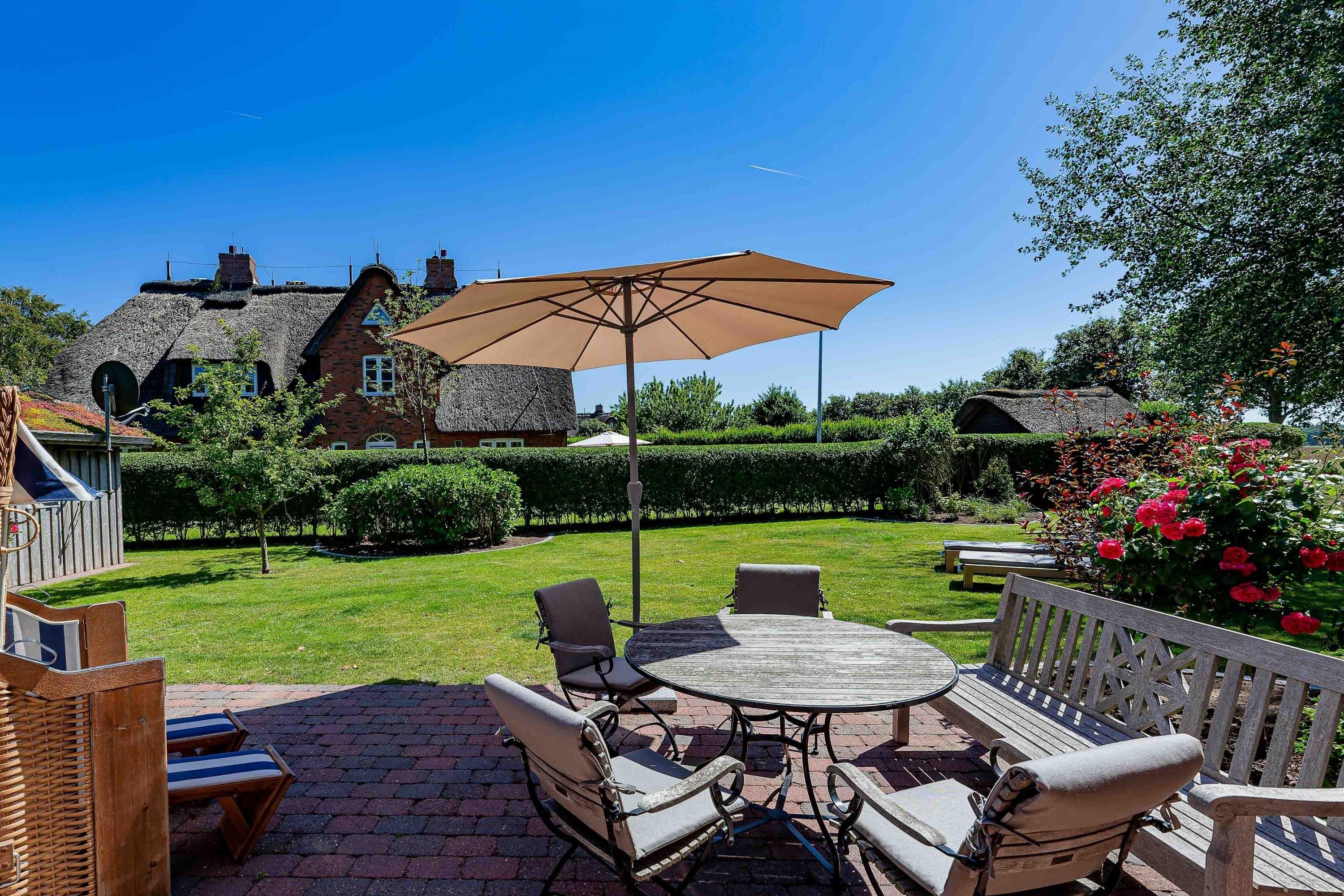 Ein herzliches Willkommen in unserem wunderschönen, reetgeckten Einzelhaus "Landhaus de Meere". Es liegt schön und ruhig am Rande der Felder und doch gleichzeitig zentral in Nieblum in der Nähe zum Teich „De Meere“. Zum herrlichen Sandstrand sind es nur wenige Minuten. Genießen Sie die gemütliche, hochwertige Einrichtung und die Großzügigkeit der lichtdurchfluteten Räume in Ihrem Reethaus. Der liebevoll angelegte Garten –mit Blick über die Wiesen verleitet zum Träumen und wird Sie begeistern. Einfach das perfekte Haus für Sie und Ihre gesamte Familie. Besuchen Sie uns und genießen Sie eine herrliche Urlaubszeit.