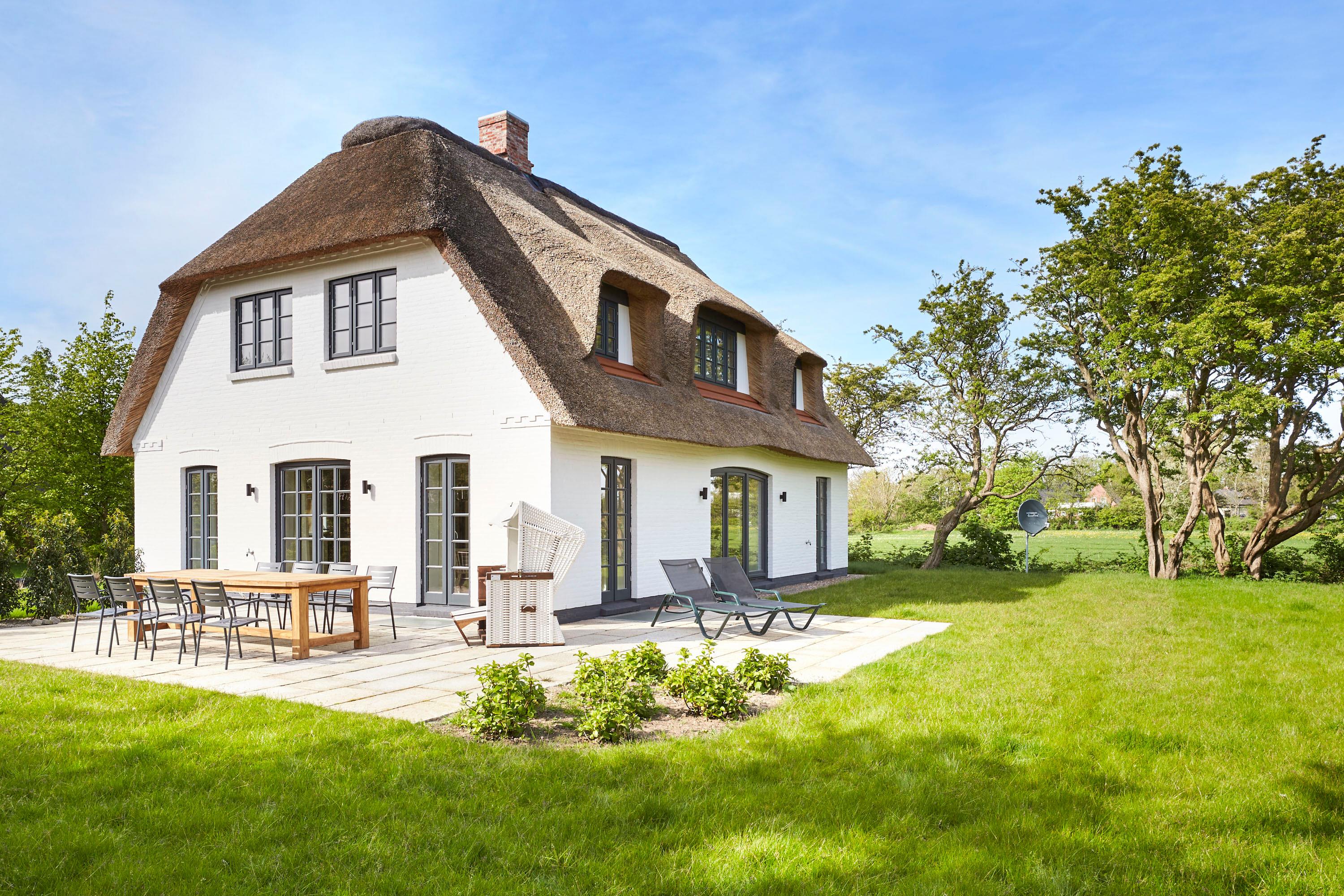 Das wunderschöne reetgedeckte Einzelhaus 'Wit Parel’ liegt ruhig in einer Sackgasse am Dorfrand des zauberhaften Nieblums und bietet einen herrlichen Blick über die Felder. Nieblum, eines der schönsten Dörfer von Föhr, verleiht diesem außergewöhnlichen Reethaus eine besonders malerische Kulisse, die Ruhe und Erholung verspricht. Mit dem Fahrrad sind es nur 10 Minuten zum Strand.
