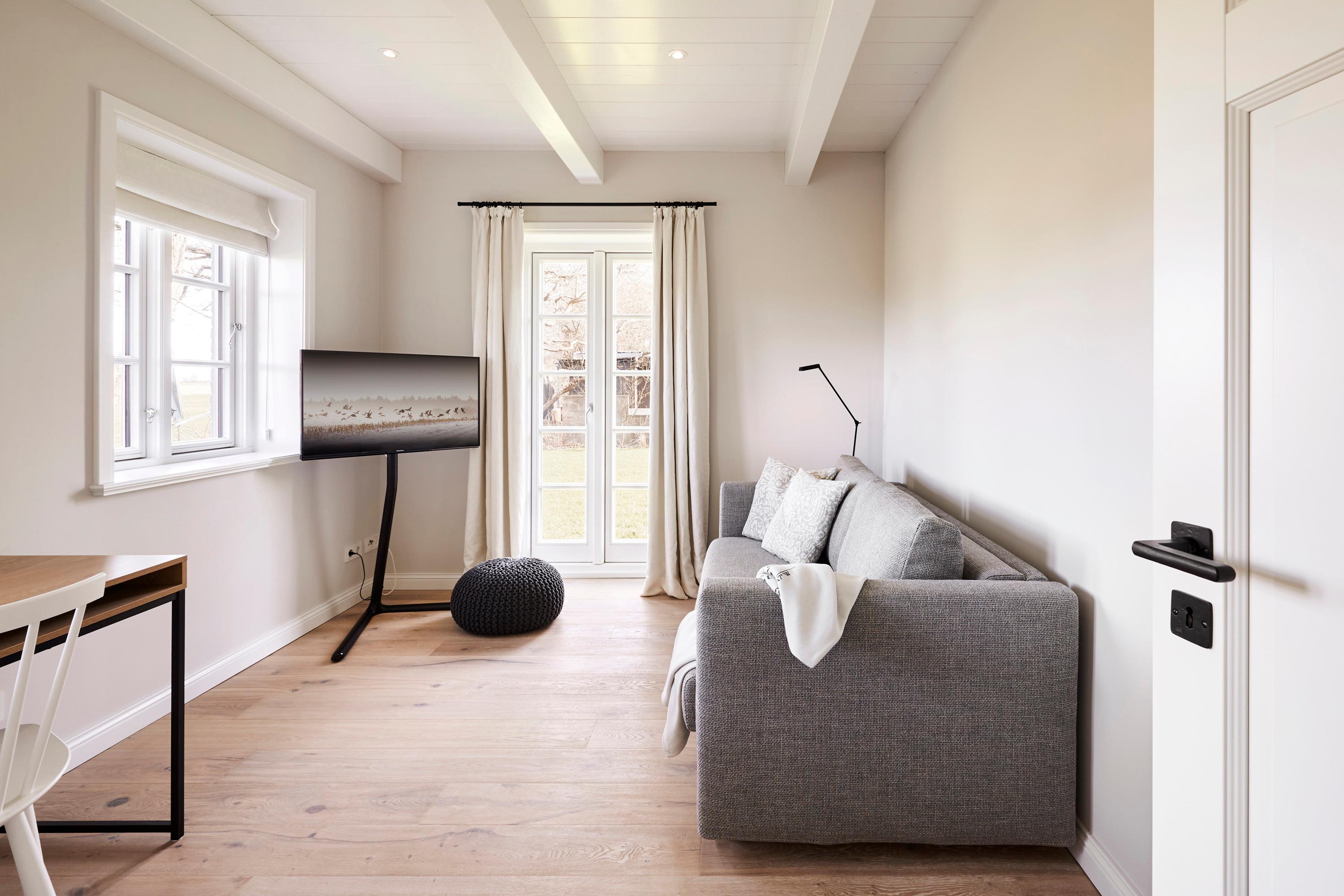 'Wit Parel' wurde mit viel Liebe zum Detail errichtet und mit seiner weißen und dunkelgrauen Gestaltung verbindet es gekonnt moderne Elemente mit gemütlichem Ambiente. Jeder Raum ist sorgfältig gestaltet und bietet einen Mix aus Eleganz und Behaglichkeit. In diesem luxuriösen Ferienhaus bleiben keine Wünsche offen. Die drei Schlafzimmer bieten viel Platz: ein Doppelzimmer mit eigenem Badezimmer, ein weiteres Doppelzimmer und ein Kinderzimmer mit zwei Einzelbetten teilen sich ein Badezimmer mit Badewanne – perfekt für Familien oder eine Gruppe von Freunden. Alle Schlafzimmer haben Einbauschränke und Fernseher. Das Highlight des Hauses ist das großzügige, helle Wohnzimmer mit zahlreichen bodentiefen Fenstern und einer offenen Küche - ein einladender Raum, in dem man sich gerne aufhält und gemeinsame Zeit genießt. Ein separates Arbeitszimmer mit Blick über die Felder bietet die Möglichkeit für Ruhe und Konzentration. Der wunderschöne Garten mit einer großen Südterrasse bietet im Sommer viel Platz für die ganze Familie. Die Sauna mit einem Ruhebereich und großem Flachbildschirm sowie einem zusätzlichen Badezimmer im ausgebauten Keller ist ein zusätzliches Juwel, das für Entspannung und Wellness sorgt, besonders nach einem Tag voller Aktivitäten auf der Insel. Das Haus vereint Komfort, Stil und eine einladende Atmosphäre und verspricht einen unvergesslichen Aufenthalt.