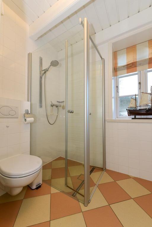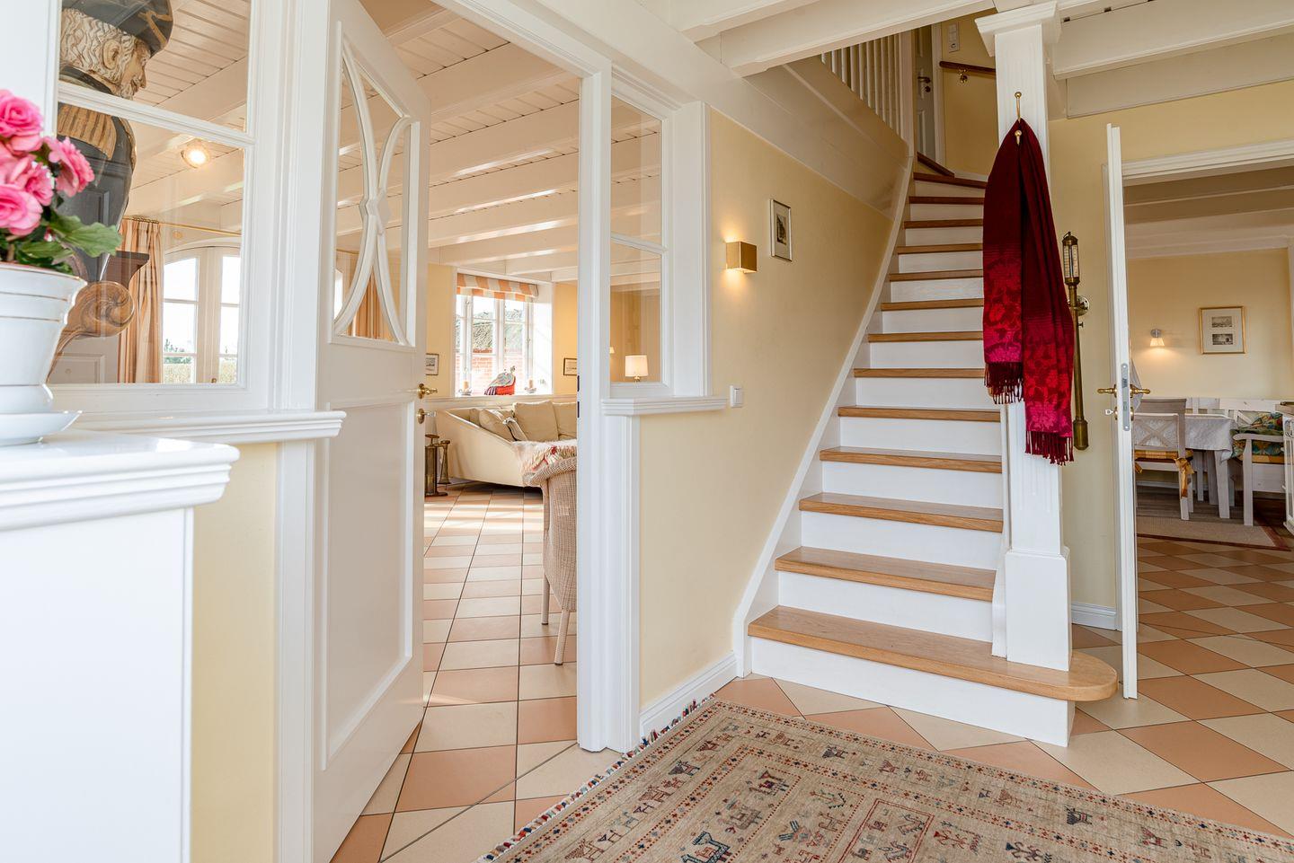 Im Obergeschoss sind die drei Schlafzimmer sowie das Vollbad gelegen. Zwei der Schlafzimmer sind mit je einem Doppelbett ausgestattet, das dritte mit zwei Einzelbetten.