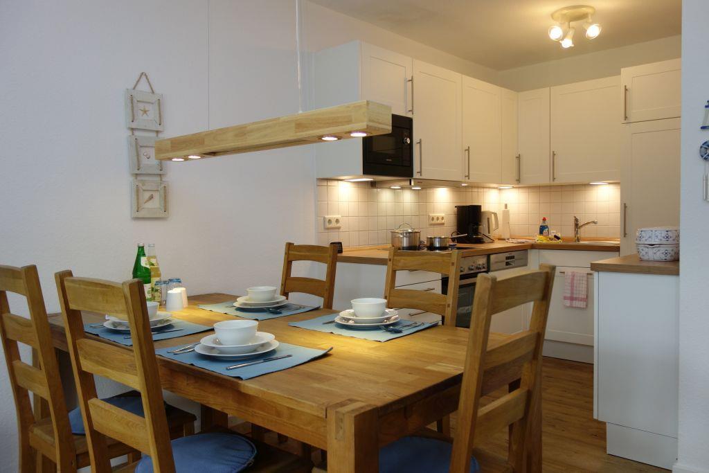 Inmitten von Nieblum, dem wohl beliebtesten Dorf der Insel, können Sie die friesische Atmosphäre in vollen Zügen erleben. Treten Sie ein und fühlen Sie sich wie zuhause – wir haben mit viel Liebe zum Detail dafür gesorgt, dass es Ihnen an nichts fehlt. Der große Esstisch bietet für alle ausreichend Platz, während die angrenzende moderne Einbauküche ideal für gemeinsame Kochabende ausgestattet ist.