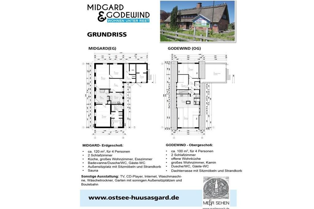 Cozy holiday apartment with sauna on the ground floor of a typical thatched-roof cottage directly on the Baltic Sea. Large garden with seating furniture and beach chair.