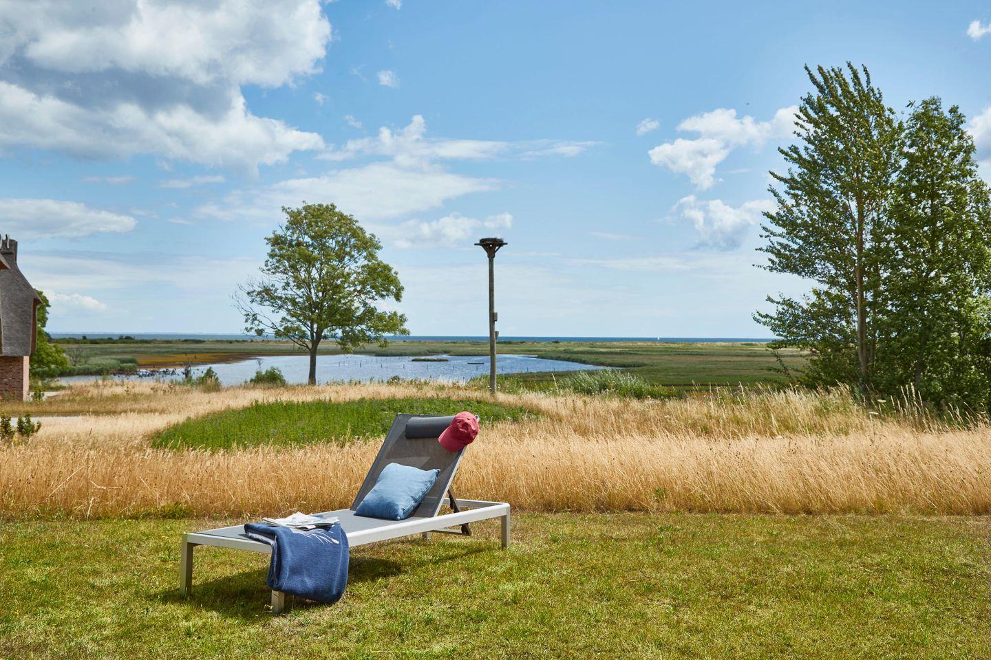Auf 145 Quadratmetern Wohnfläche genießen Sie die Annehmlichkeiten der exklusiven Einrichtung in Ihrem Atelierhaus Erlenstamm im Reetdorf Geltinger Birk. Kamin, Sauna und einer großzügigen Terrasse mit Teakholzsitzecke und eigenem Strandkorb sind nur einige Aspekte der Wohlfühl-Oasen in diesem 5-Sterne-Ferienhaus. Es verfügt über drei Doppel - und zwei Einzelzimmer mit drei Bädern, eines davon en-suite. Die unteren drei Schlafbereiche und zwei der Bäder sind frei von Schwellen und Hindernissen.