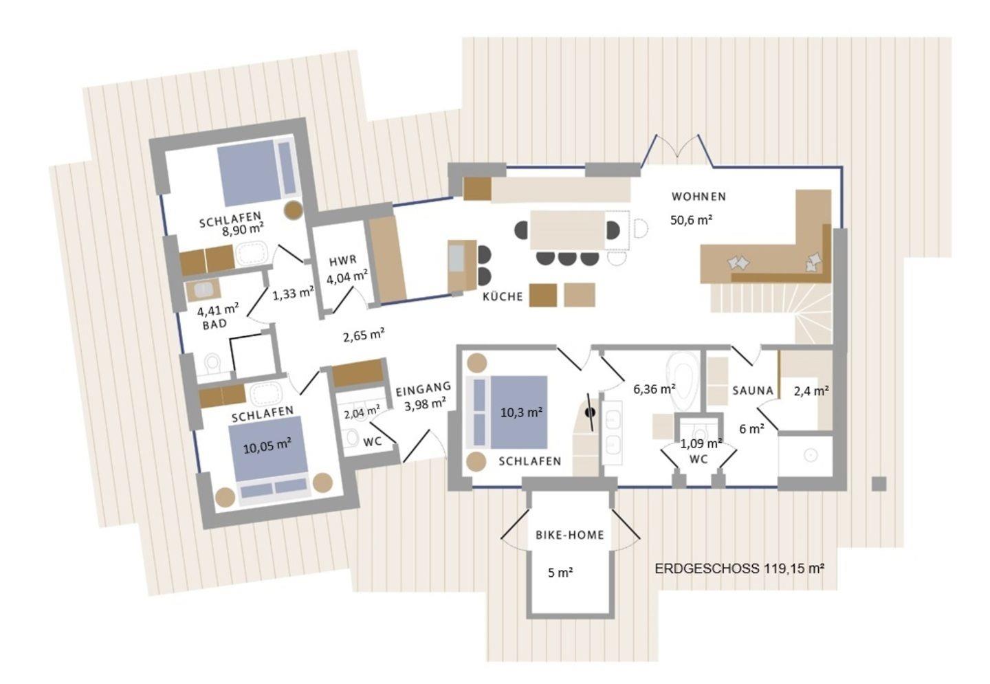 Im angebauten Fahrradraum befinden sich die hauseigenen Sonnenliegen, Ihr Elektrogrill und natürlich haben Sie hier die Möglichkeit Fahrräder sicher und trocken unterzustellen.