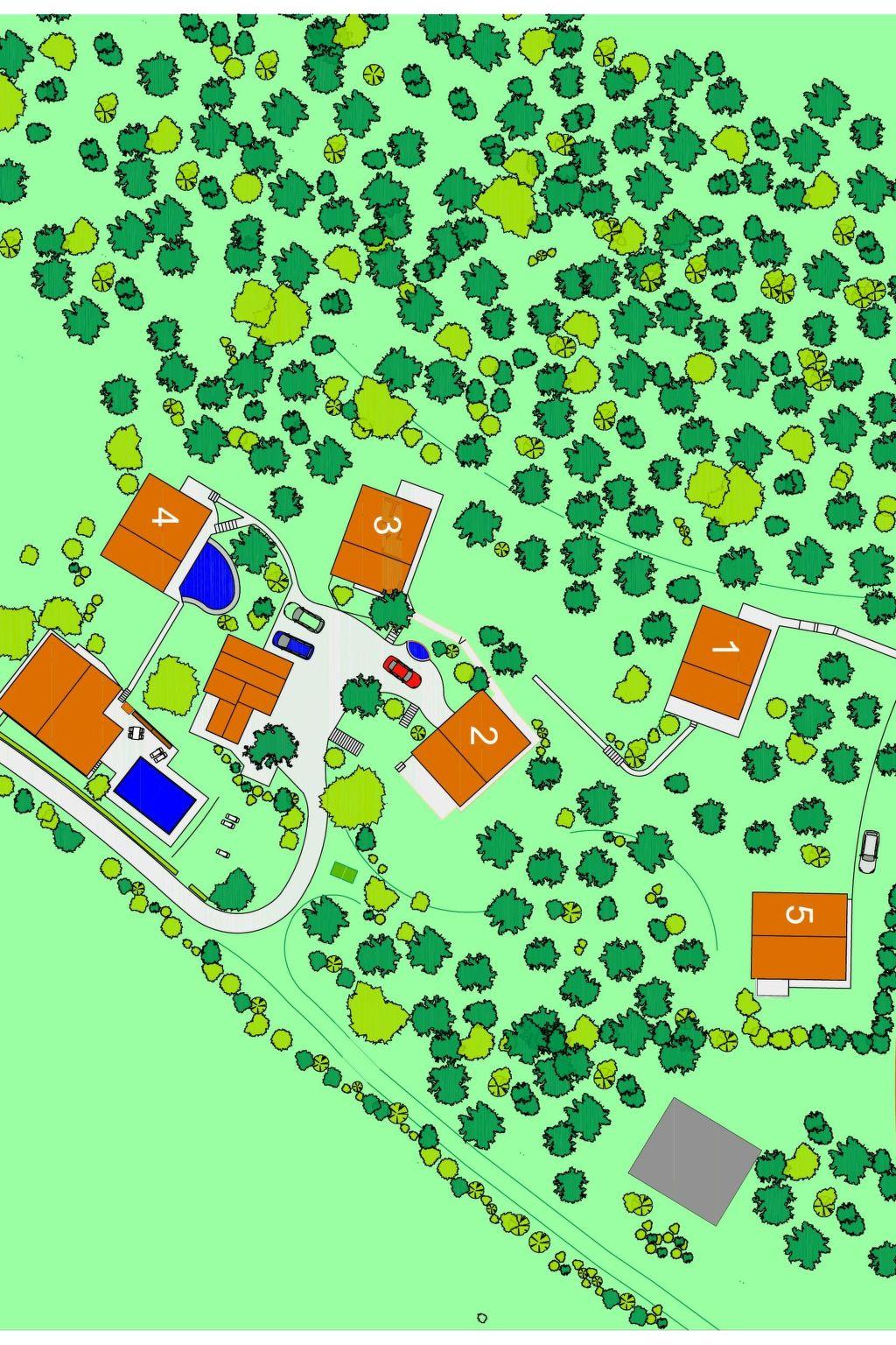 The living room opens onto the roofed terrace with garden furniture, a lounger and a grill. The house is surrounded by a big outdoor area that includes a parking space. There is a solar-heated pool (8x5m) for shared use. You can also use a sauna in the communal house for a fee.