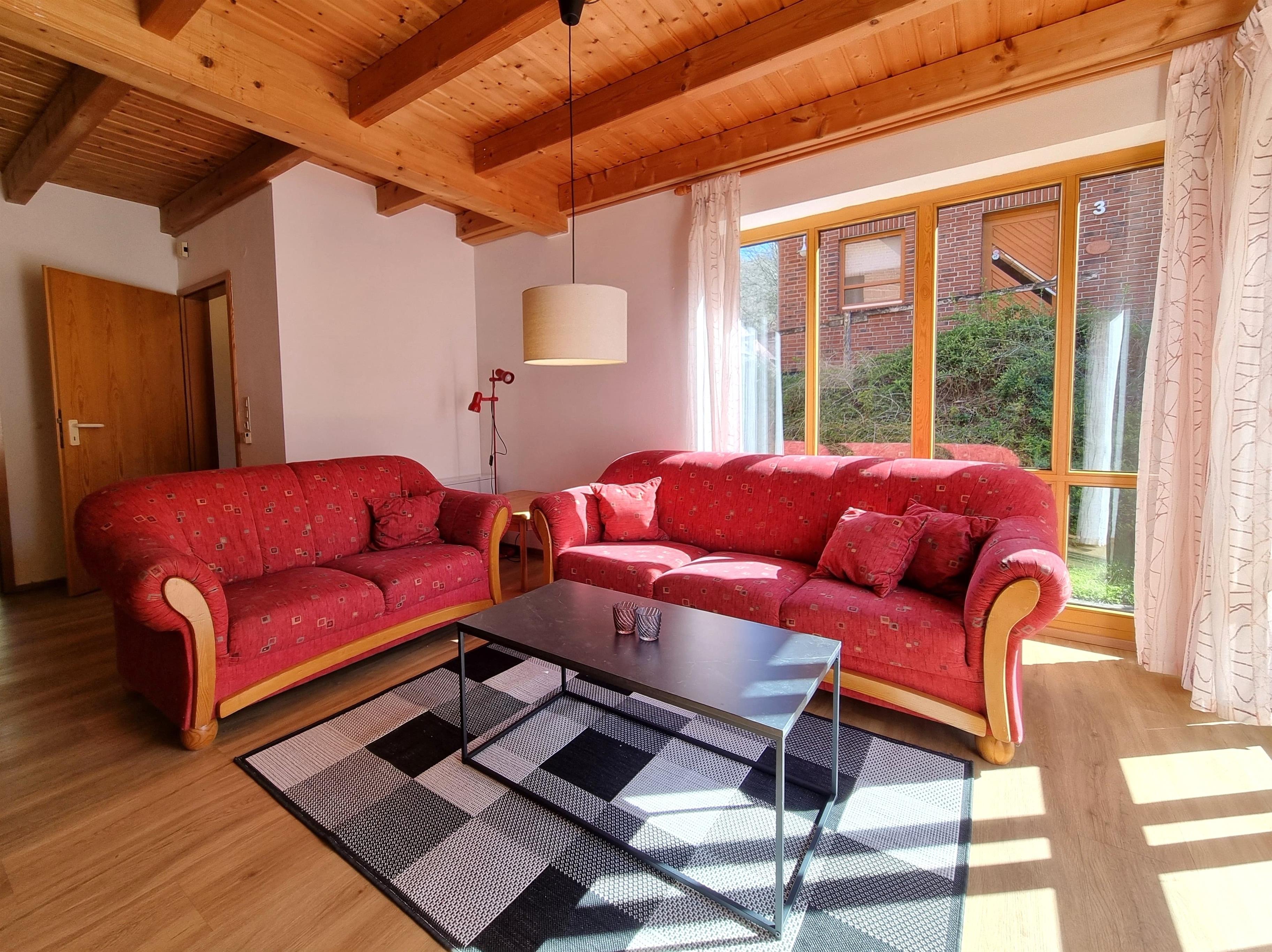 Der Park besteht aus 15 gemütlichen Doppelhäusern und einem Haupthaus mit modernen Ferienwohnungen. Dieses Ferienhaus (Haus Nr. 2) bietet Platz für 7 Personen verteilt auf drei Schlafzimmer und überzeugt durch großzügige, helle Räume, einen eigenen Eingang, eine Terrasse mit Grill sowie einen Kaminofen für gemütliche Abende. Die voll ausgestattete Küche mit Spülmaschine und der zentrale Esstisch sorgen für Komfort und gemeinsame Erlebnisse.