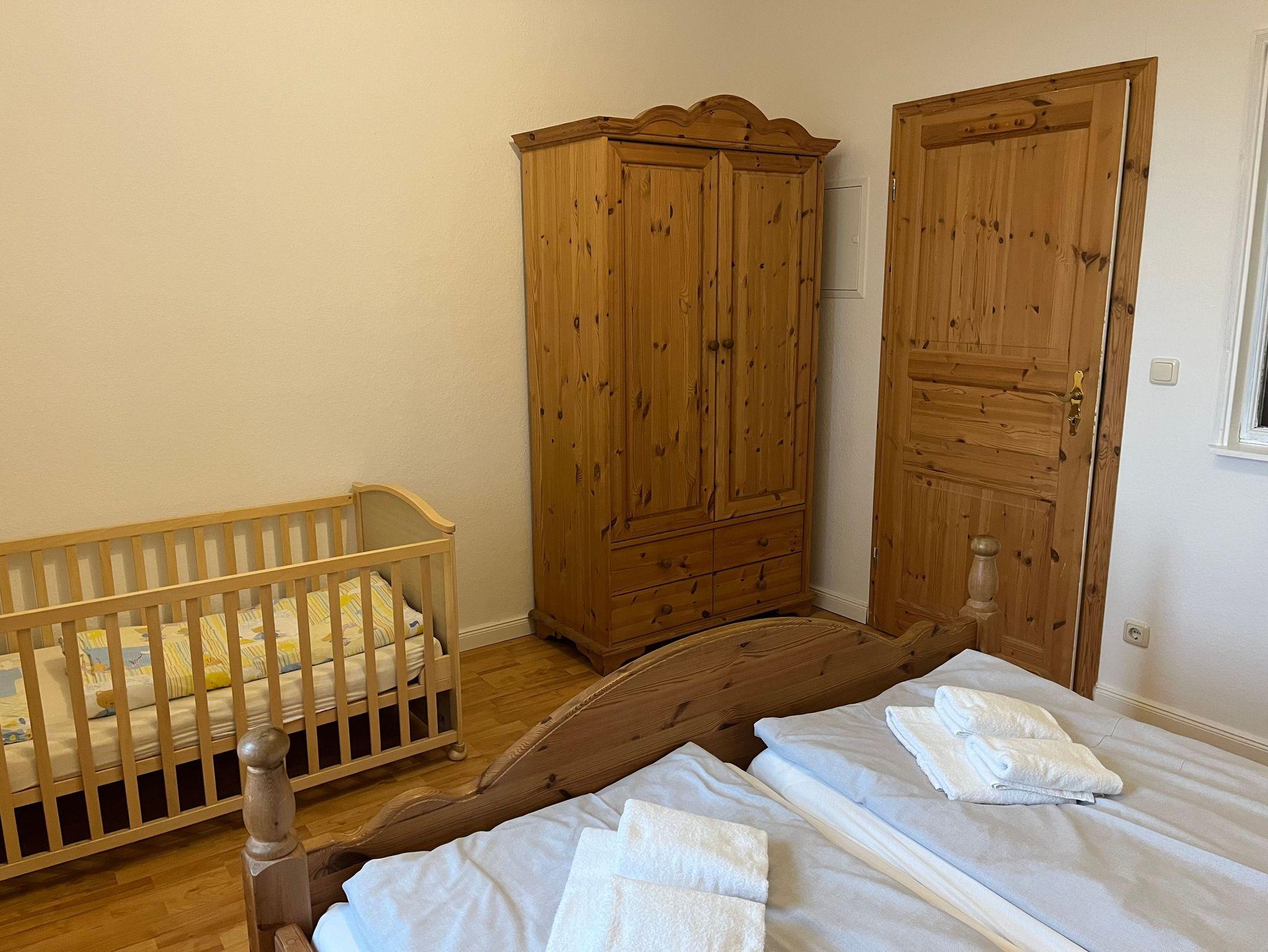1 Schlafzimmer (1 Doppelbett), 1 Babybett oder Zustellbett stellbar
