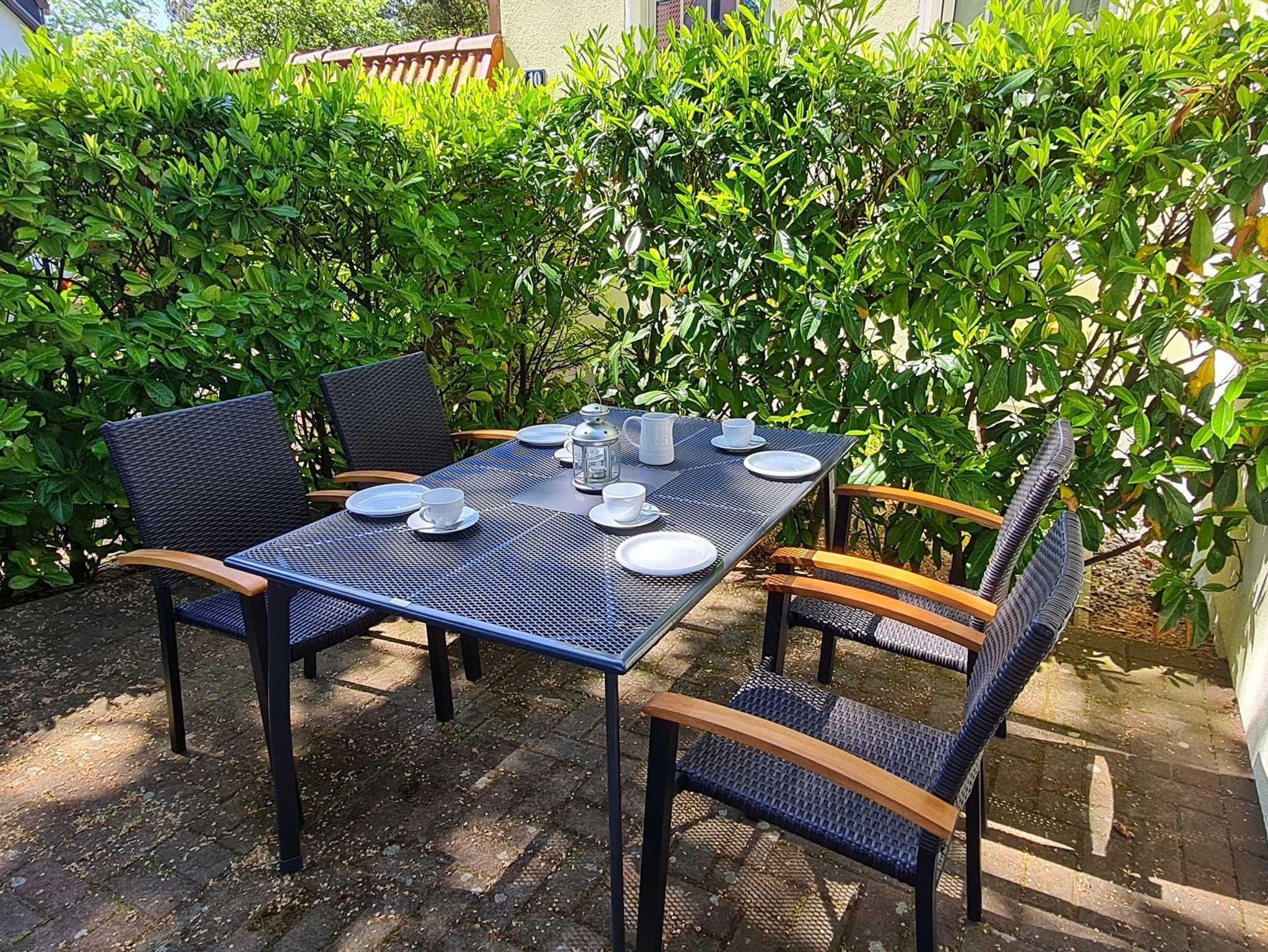 • Terrasse: Südausrichtung, großer Tisch mit Stühle - ideal zum Frühstücken, Lesen oder einfach nur die Seele baumeln lassen
