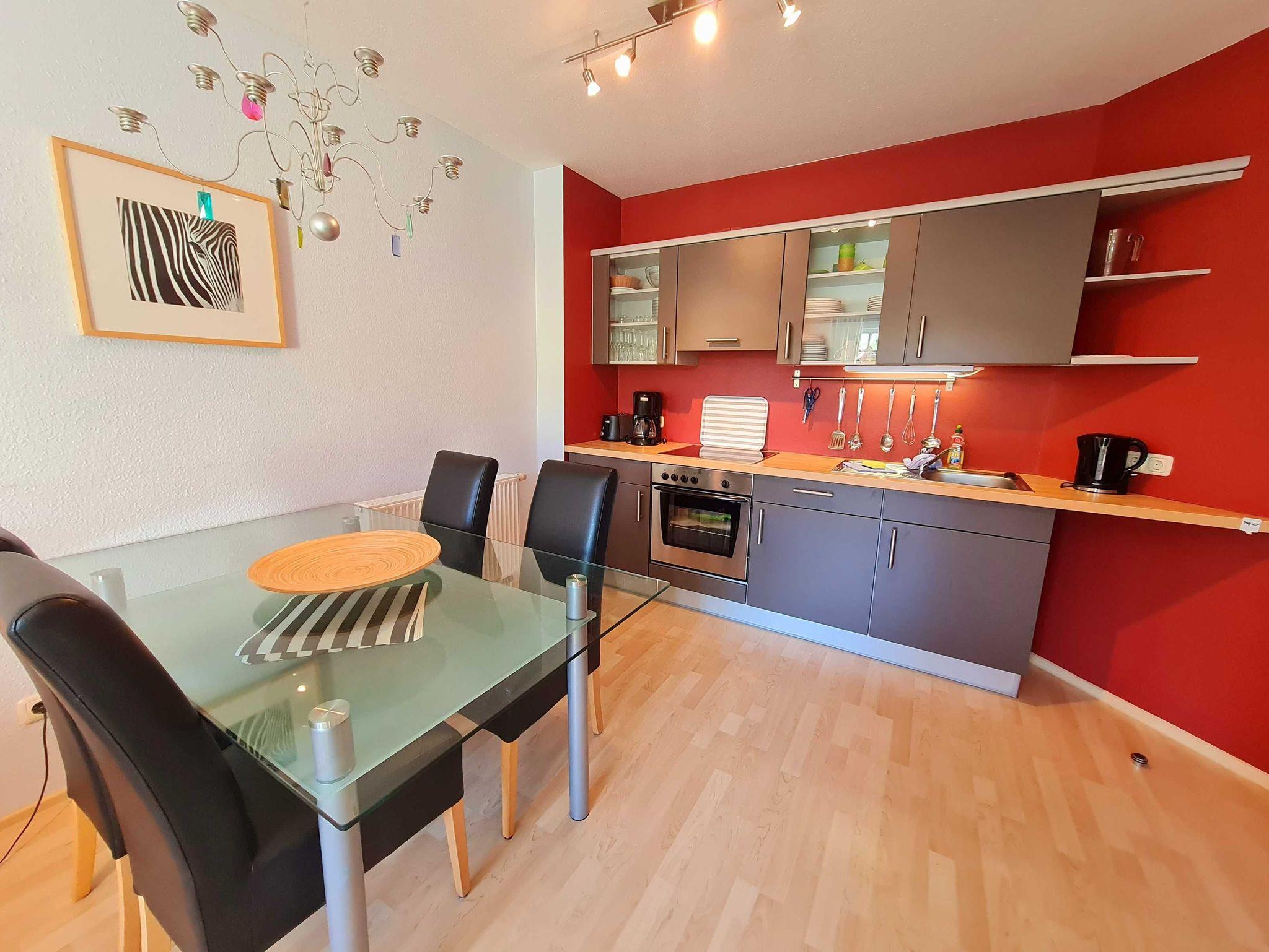 • offene Wohnküche mit Essbereich für 4 Personen, mit Backofen, Ceranfeld, ( ohne Geschirrspüler) Wasserkocher, Toaster, Kaffeemaschine