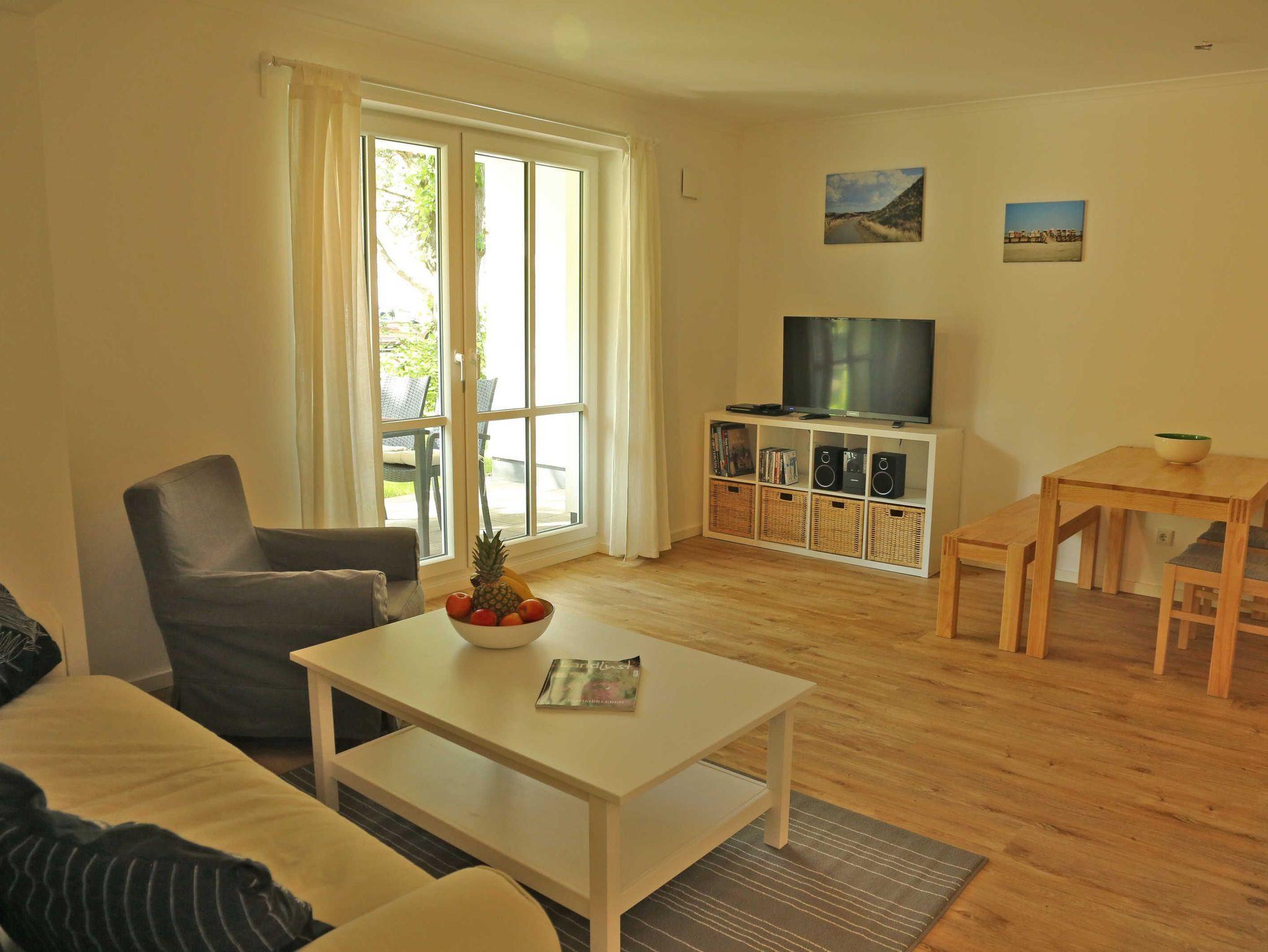 Unsere Ferienwohnung mit Süd-Terrasse (9m²) befindet sich im Erdgeschoss in einer in 2015 fertiggestellten, architektonisch ansprechenden ruhigen Wohnanlage im idyllischen Ostseebad Nienhagen.