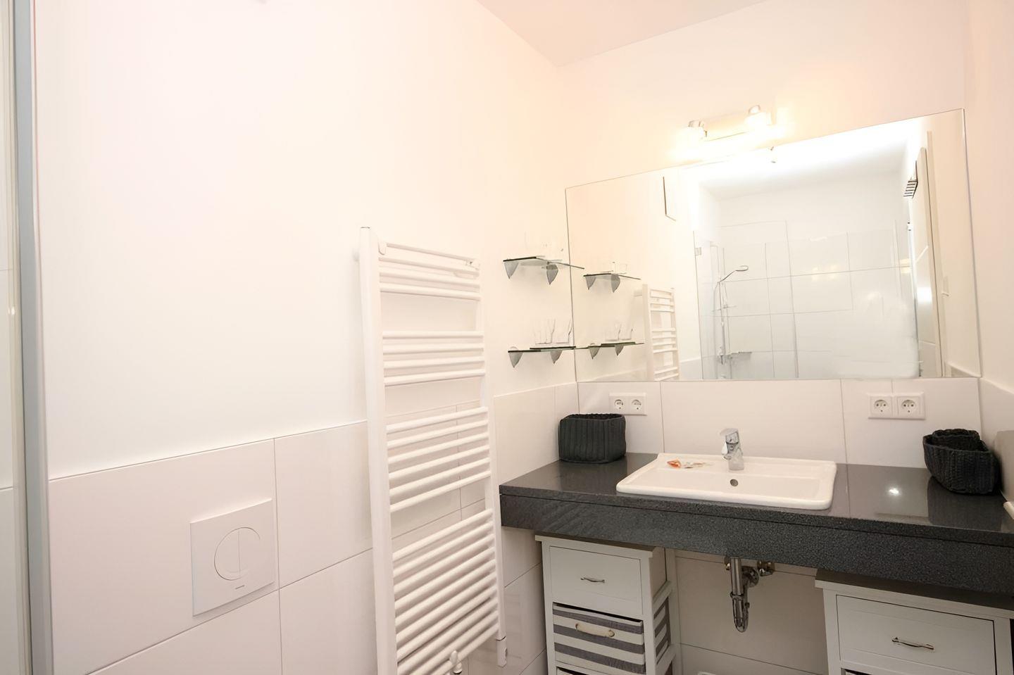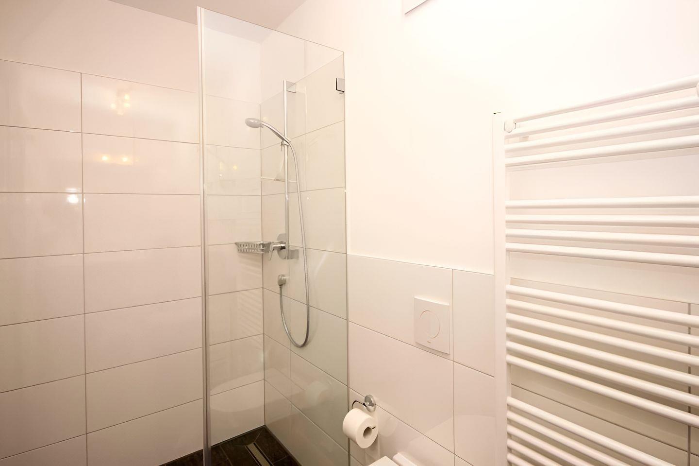 Das Badezimmer (innenliegend) bietet eine ebenerdige Dusche.