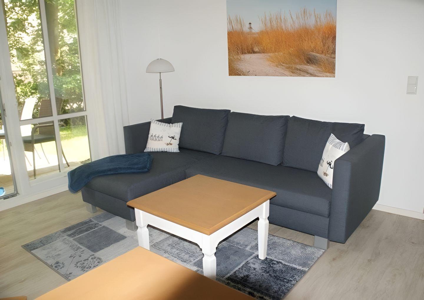 Wohnbereich mit einem gemütlichen Sofa mit Chaiselongue für 4 Personen