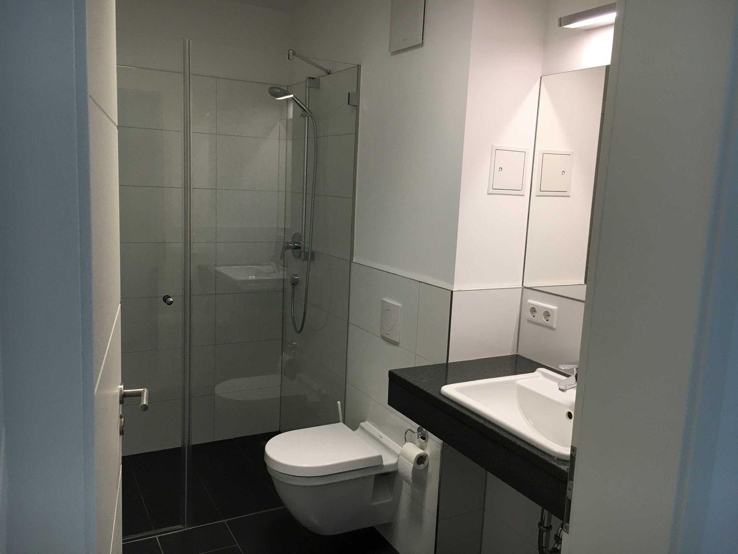 Im Bad ist eine begehbare, ebenerdige Dusche zum Wohlfühlen eingebaut.