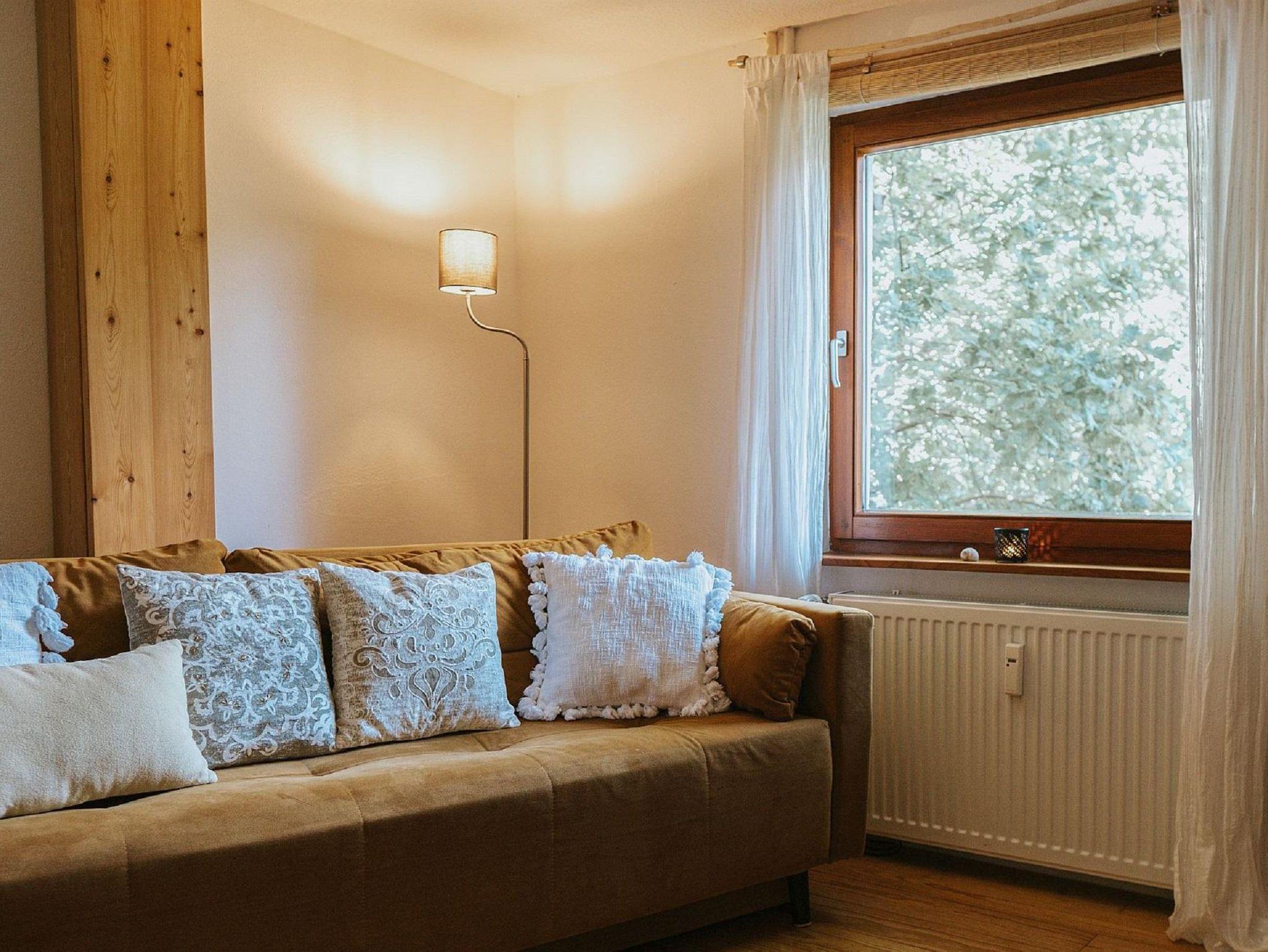 Die 55 qm große Ferienwohnung und der Behandlungsraum sind mit Mobiliar aus Vollholz, Lehmputz, Sumpfkalkfarbe, sowie Naturölen für die Holzböden kreiert worden. Die Wohnung besitzt ihren eigenen Hauseingang, sodass Sie ungestört die Ferienwohnung beziehen können. Ein Toaster, Wasserkocher und eine Kaffeepressmaschine sind selbstverständlich in der Küche. Der Kühlschrank verfügt über ein Tiefkühlfach. Das Bett misst eine Breite von 1,60 Meter, das gemütliche Schlafsofa im Wohnzimmer ebenfalls. Die Baumwoll-Bettwäsche, 2 Handtücher/Person und ein Fön sind im Preis inklusive. Das Bad verfügt über eine begehbare Dusche. Eine eigene Waschmaschine und Trockner sind gegen Aufpreis gerne nutzbar! WLAN ist jederzeit verfügbar. Fahrräder können gerne in der Garage abgestellt werden. Im ganzen Haus wird Ökostrom bezogen! Das Haus ist ein Nichtraucherhaus.
