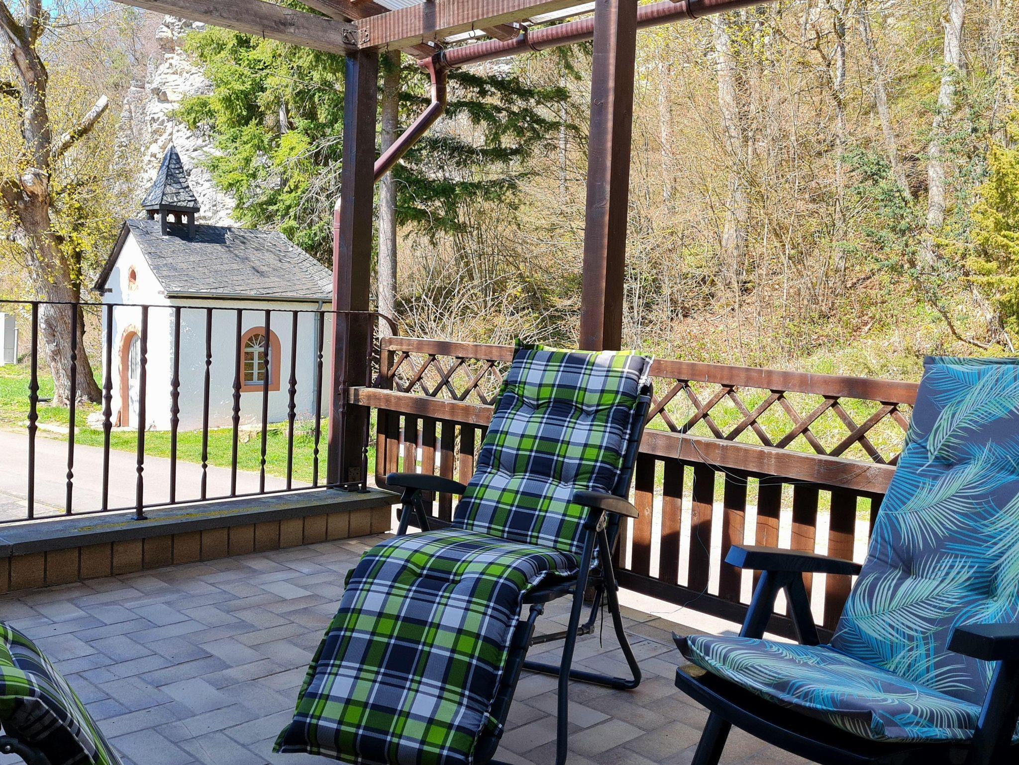 Das Haus ist nach der Hochwasserkatastrophe 2021 aufwändig renoviert worden .Die nebenstehende Kapelle war nach der ersten Hochwasserkatastrophe 1804 als Dank errichtet und lädt zum meditativen Verweilen ein.