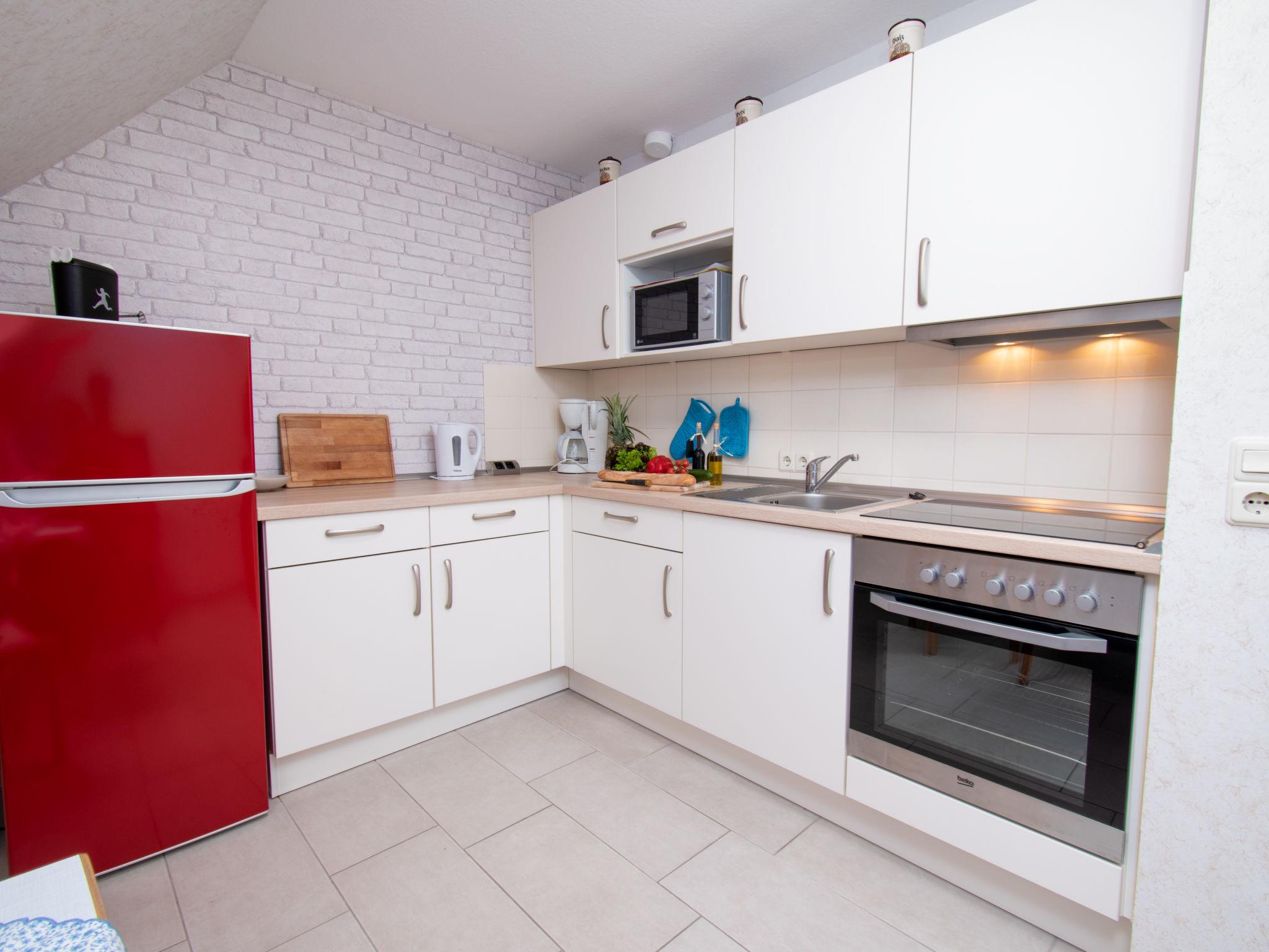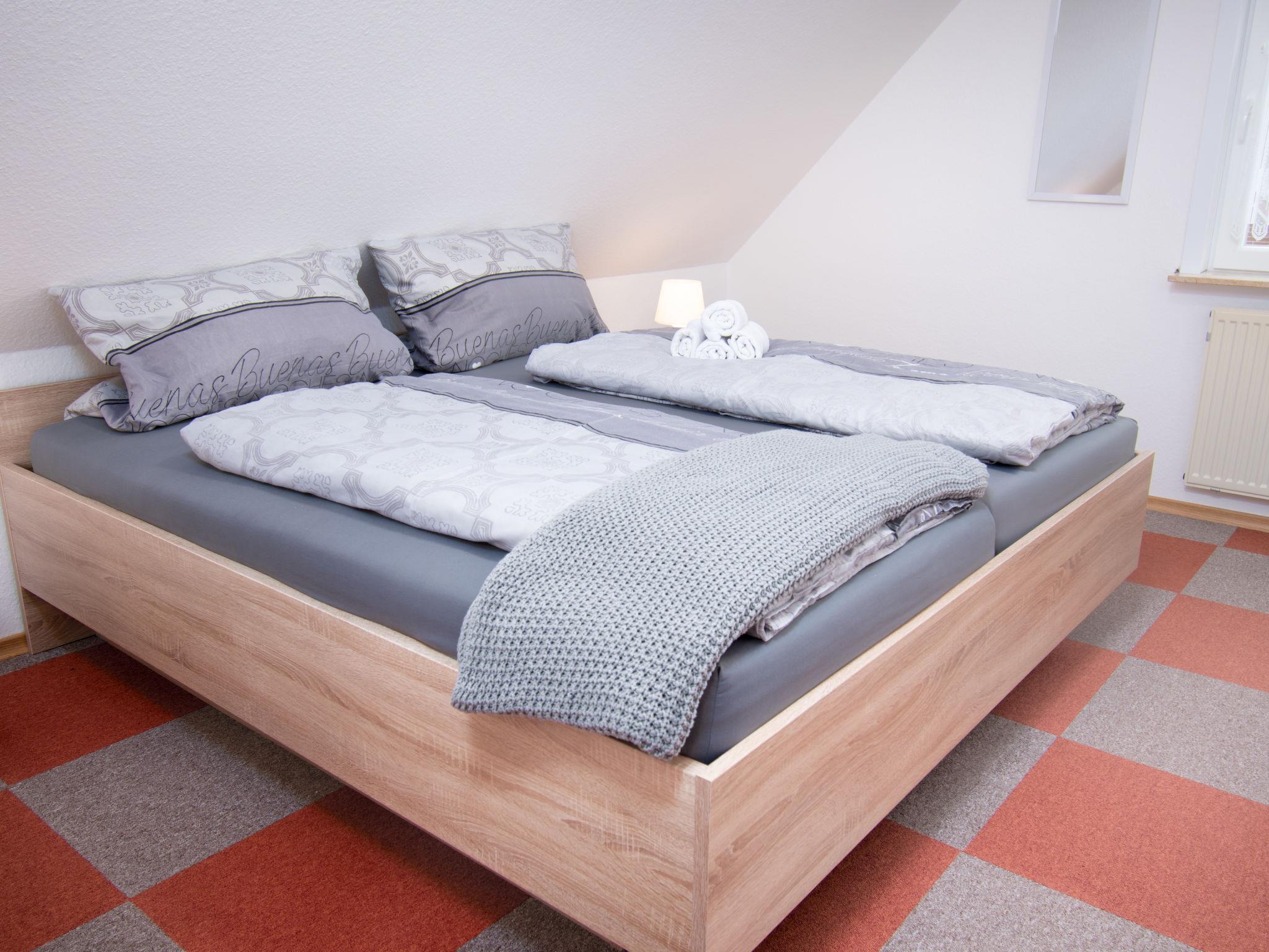 3-room apartment 60 m2, on the upper floor. Object suitable for 4 adults. Beautiful furnishings: living/dining room 20 m2, with sloping ceilings with satellite TV and hi-fi system. 1 room 15 m2, with sloping ceilings with 1 double bed (2 x 100 cm, length 200 cm). 1 room 13 m2, with sloping ceilings with 1 double bed (2 x 100 cm, length 200 cm). Kitchen 8 m2 (oven, microwave, electric coffee machine). Shower/WC. Facilities: Internet (WiFi, free). Please note: non-smokers only. Smoke alarm.