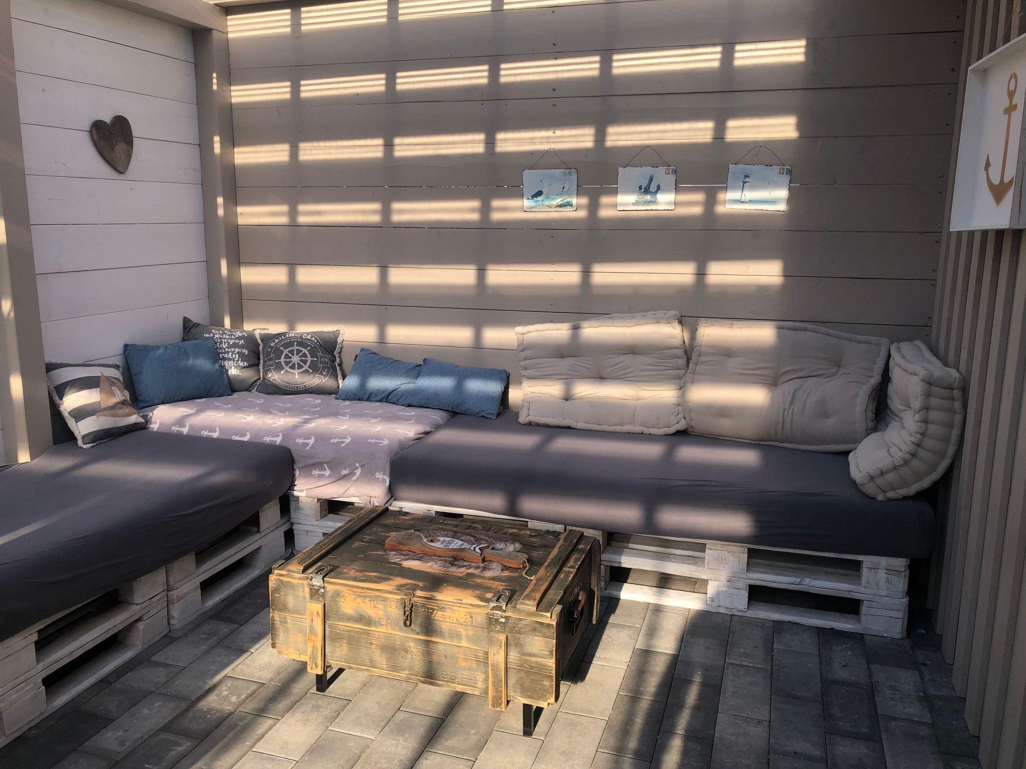 There are two beautiful terraces with a small lawn and a small house at your disposal. A charcoal barbecue as well as wooden furniture with cushions and children's toys/sandbox are available.