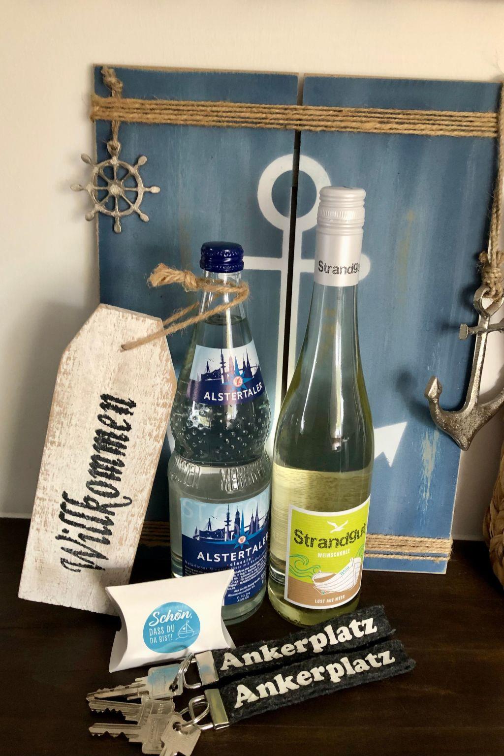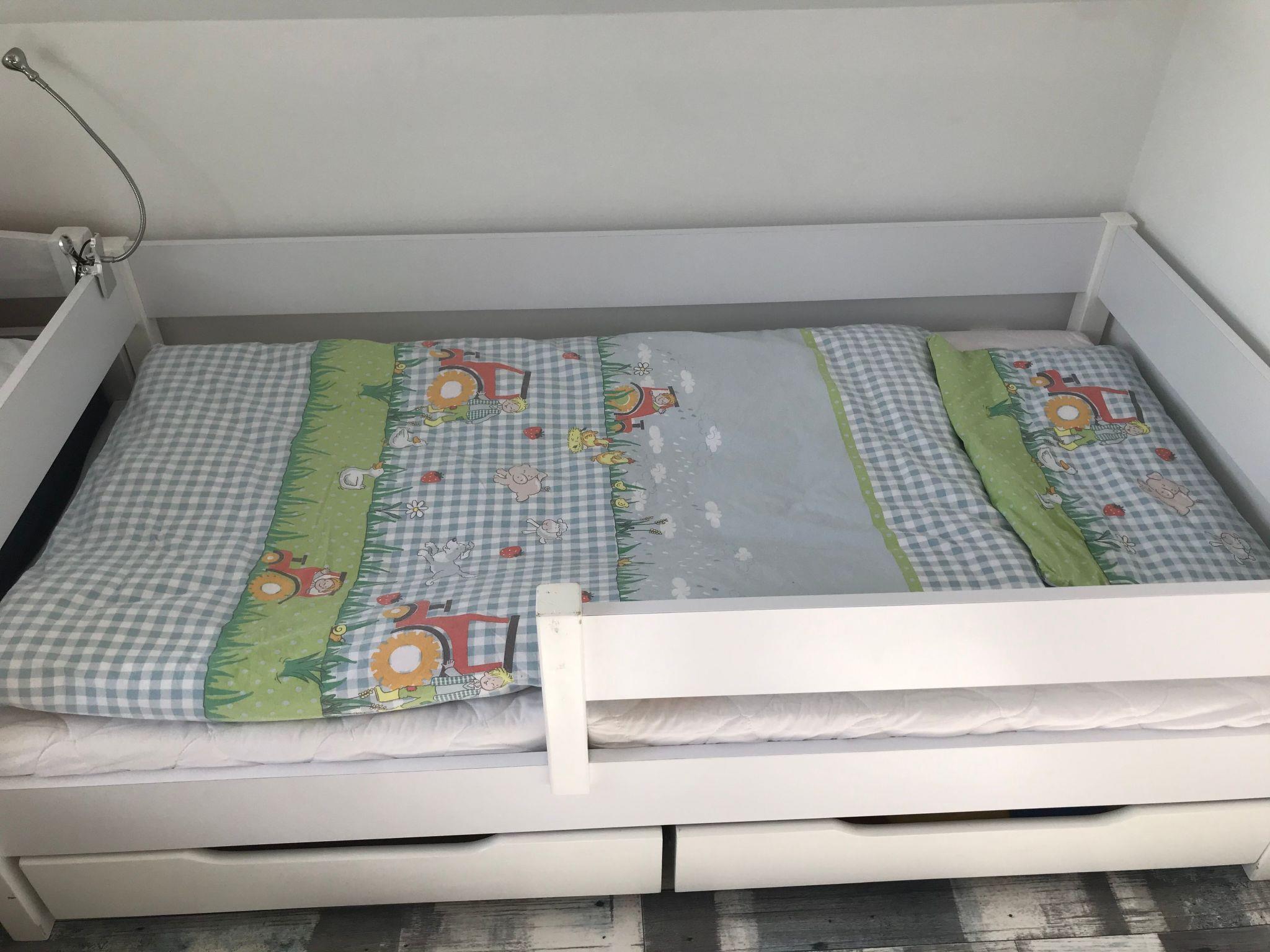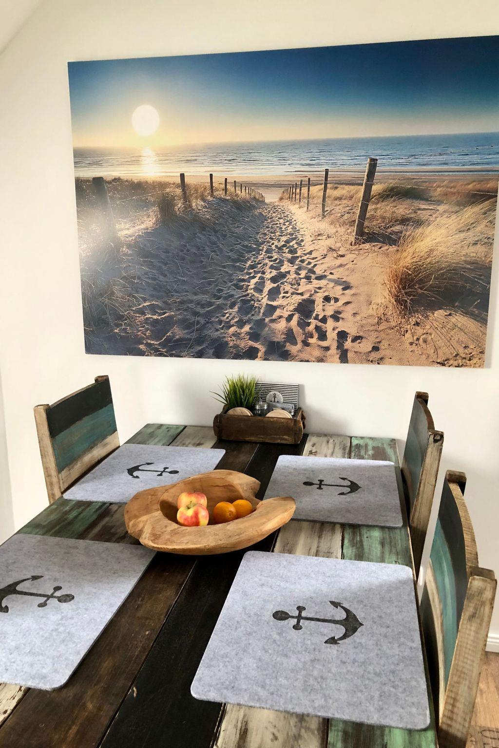 Our flat ?? ANKERPLATZ ?? is located on the 1st floor and can be reached via an external staircase. It is 85 m2 in size, suitable for up to 5 people and has 3 bedrooms (master bedroom double bed 180x200cm, children's room 1x 90x200cm + 1x 70x160cm with fall-out protection, further bedroom 140x200cm bed and children's cot). In addition, the spacious living room with large sofa, TV and dining table invites you to spend relaxing evenings. A high-quality bathroom with shower, WC and washbasin and the modern kitchen with dishwasher, cooker, fridge, freezer compartment and additional seating complete the offer. Fully equipped kitchenette, bed linen and towels, TV, non-smoking rooms, a terrace with hut and lawn and a covered terrace, parking spaces, blackout blinds in the bedrooms, fly screens, washing machine (only for a fee), clothes horse, free WiFi, hairdryer, fans, barbecue equipment, baby travel cot, ventilation system, smoke detector, underfloor heating, board games, books, colouring materials, sandpit etc.